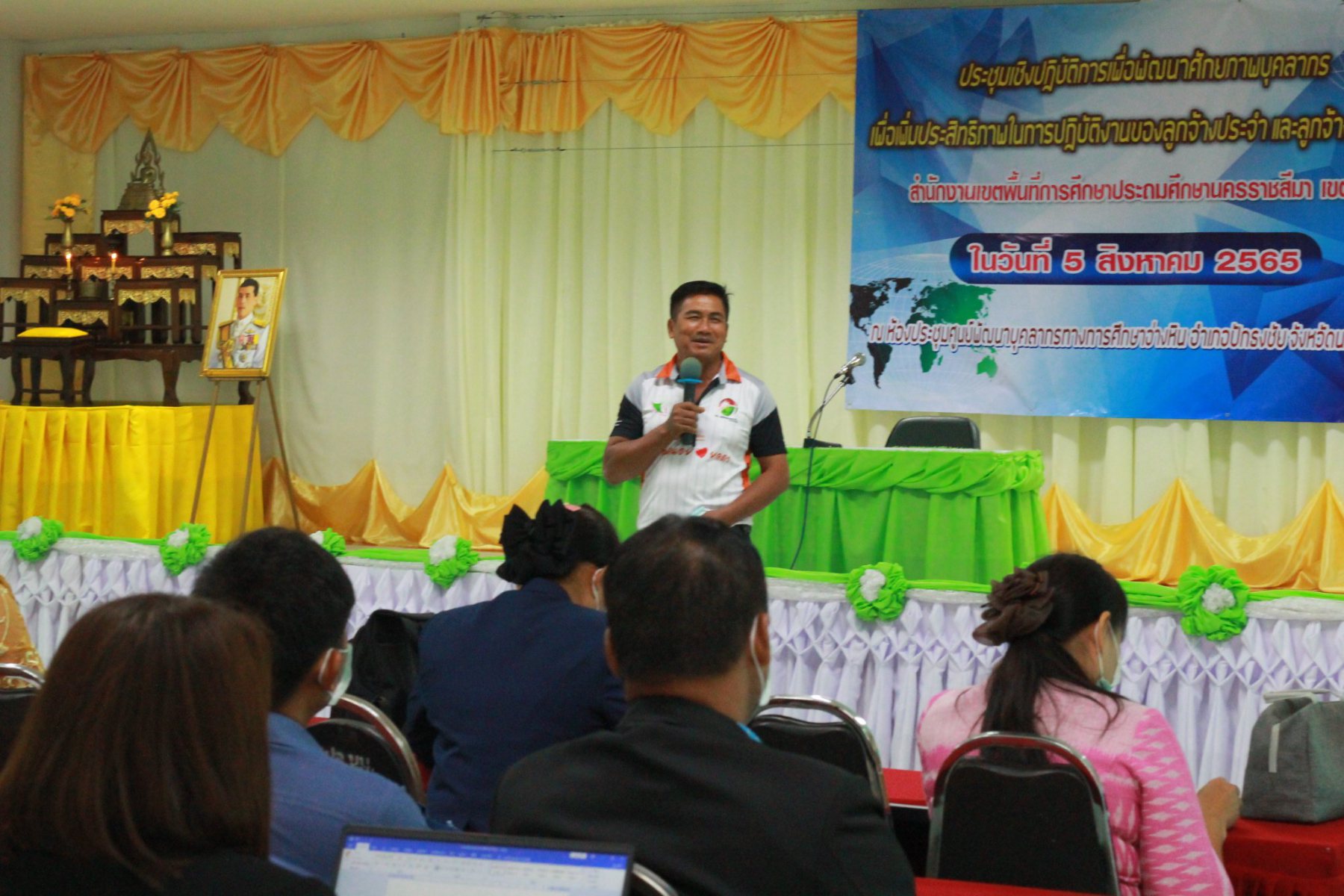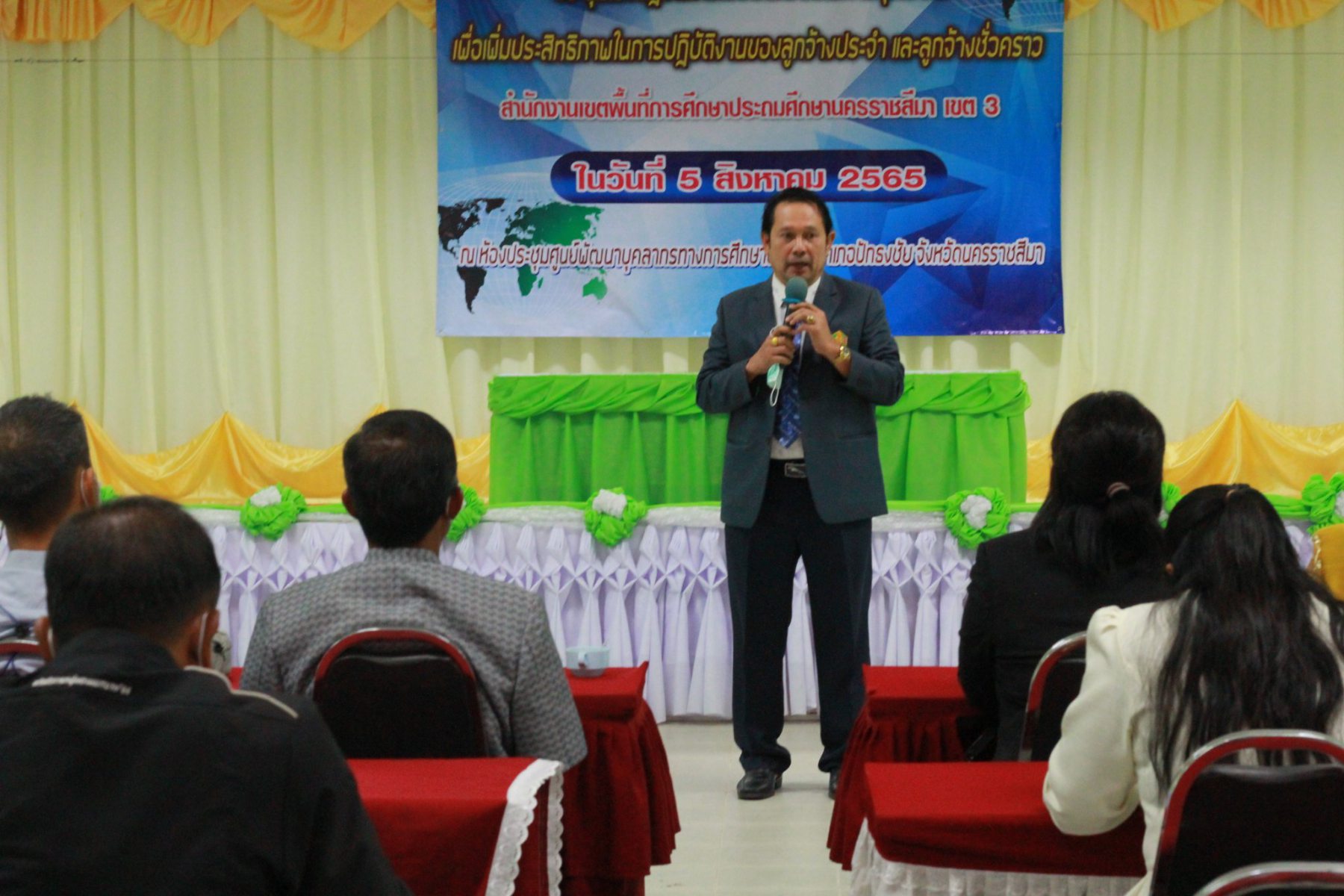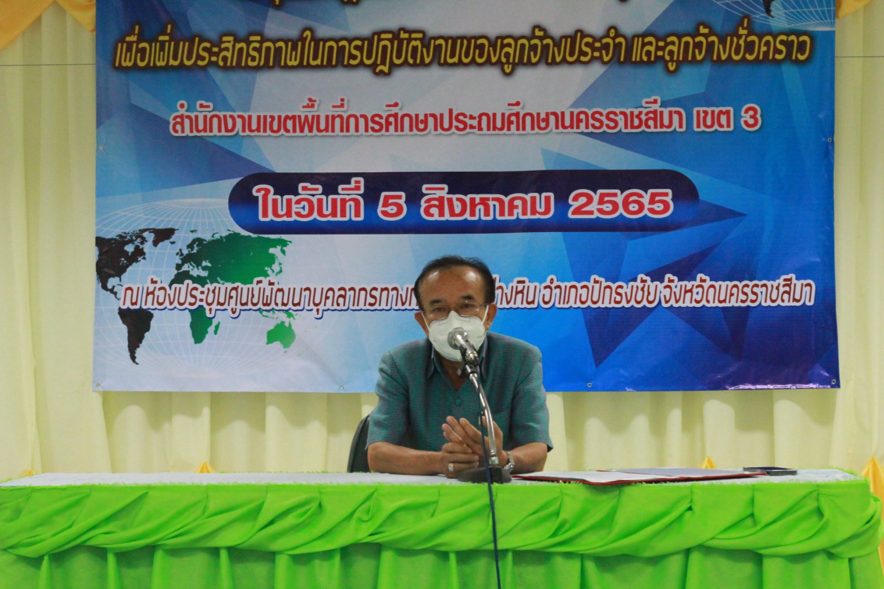 วันที่ 5 สิงหาคม 2565 เวลา 09.00 น. นายเผด็จศึก โชติกลาง ผู้อำนวยการสำนักงานเขตพื้นที่การศึกษาประถมศึกษานครราชสีมา เขต3 ประธานพิธีเปิดการโครงการประชุมเชิงปฏิบัติการเพื่อพัฒนาศักยภาพบุคลากรเพื่อเพิ่มประสิทธิภาพในการปฏิบัติงานของลูกจ้างประจำและลูกจ้างชั่วคราว สำนักงานเขตพื้นที่การศึกษาประถมศึกษา นครราชสีมา เขต 3 ณ ศูนย์พัฒนาบุคลากรทางการศึกษา อ่างหิน อำเภอปักธงชัย จังหวัดนครราชสีมา