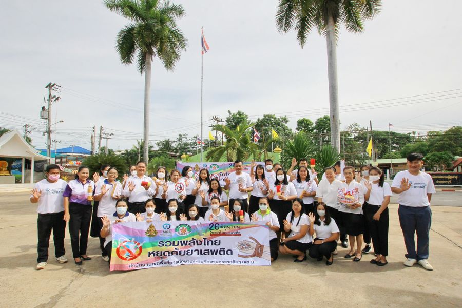 วันที่ 26 มิถุนายน 2566 เาลา 08.30 น. นายอังคารพิสุทธิ์ สยามประโคน รองผอ.สพป.นครราชสีมา เขต3 ประะานเปิดกิจกรรมวันต่อต้านยาเสพติดโลก(26 มิถุนายน)สำนักงานเขตพื้นที่การศึกษาประถมศึกษานครราชสีมา เขต 3 เพื่อร่วมรณงค์ และสร้างความตระหนักถึงพิษภัยจากยาเสพติดและร่วมกันเป็นพลังในการป้องกัน แก้ไข เฝ้าระวัง ปัญหายาเสพติดอย่างจริงจังและต่อเนื่อง เพื่อให้การเอาชนะยาเสพติดได้ผลอย่างยั่งยืน กลุ่มส่งเสริมการจัดการศึกษา จึงได้ดำเนินการจัดกิจกรรม ร่วมกันแสดงพลังต่อต้านยาเสพติดด้วยการสวมเสื้อขาวแสดงออกเชิงสัญลักษณ์ ในวันที่ 26 มิถุนายน พ.ศ.2566 ในระดับเขตพื้นที่การศึกษาประถมศึกษานครราชสีมา เขต 3 ภายใต้กรอบแนวคิด”รวมพลังไทย หยุดภัยยาเสพติด ” 26 มิถุนายน 2566