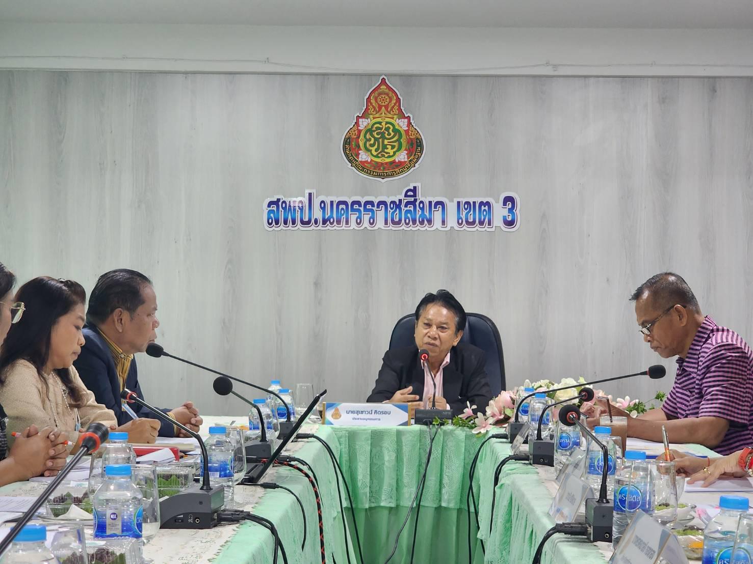 วันที่ 25 กรกฎาคม 2566 นายสายัณห์ คอกขุดทด รองผอ.สพป.นครราชสีมา เขต3 ให้การต้อนรับอนุคณะกรรมการติดตามการขับเคลื่อนแผนพัฒนาการศึกษาจังหวัดนครราชสีมาและโครงการหลัก ตามกลไก กศจ. ประจำปีงบประมาณ พ.ศ. 2566 นำโดยนายเชาวน์ คิดรอบ ประธานอนุกกรรมการฯพร้อมคณะ ณ ห้องประชุมเบญจมาศ สำนักงานเขตพื้นที่การศึกษาประถมศึกษานครราชสีมา เขต3