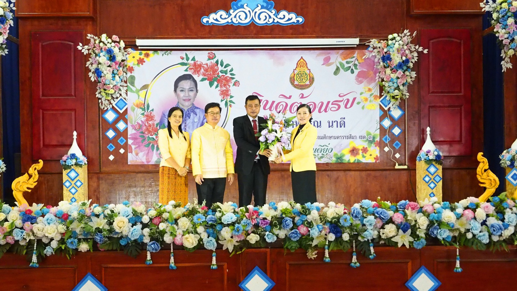 วันที่ 6 ตุลาคม 2566 คณะผู้บริหารการศึกษา คณะผู้บริหารสถานศึกษา ข้าราชการครูและบุคลากรทางการศึกษา ในสังกัดสำนักงานเขตพื้นที่การศึกษาประถมศึกษานครราชสีมา เขต 3 นำโดยการนำของ นายอังคารพิสุทธ์ สยามประโคน นายเพิ่มวุธ บุปผามาตะนัง นางสาวมยุรีย์ เนตรศิลานนท์ รองผู้อำนวยการสำนักงานเขตพื้นที่การศึกษาประถมศึกษานครราชสีมา เขต 3 พร้อมด้วยผู้อำนวยการกลุ่ม ทุกกลุ่มงาน เจ้าหน้าที่ ให้การต้อนรับ นางนภาพรรณ นาดี เนื่องในโอกาสเข้ารับตำแหน่งผู้อำนวยการสำนักงานเขตพื้นที่การศึกษาประถมศึกษานครราชสีมา เขต3 คนใหม่ ณ อาคารเอนกประสงค์ โรงเรียนอนุบาลครบุรี อำเภอครบุรี จังหวัดนครราชสีมา