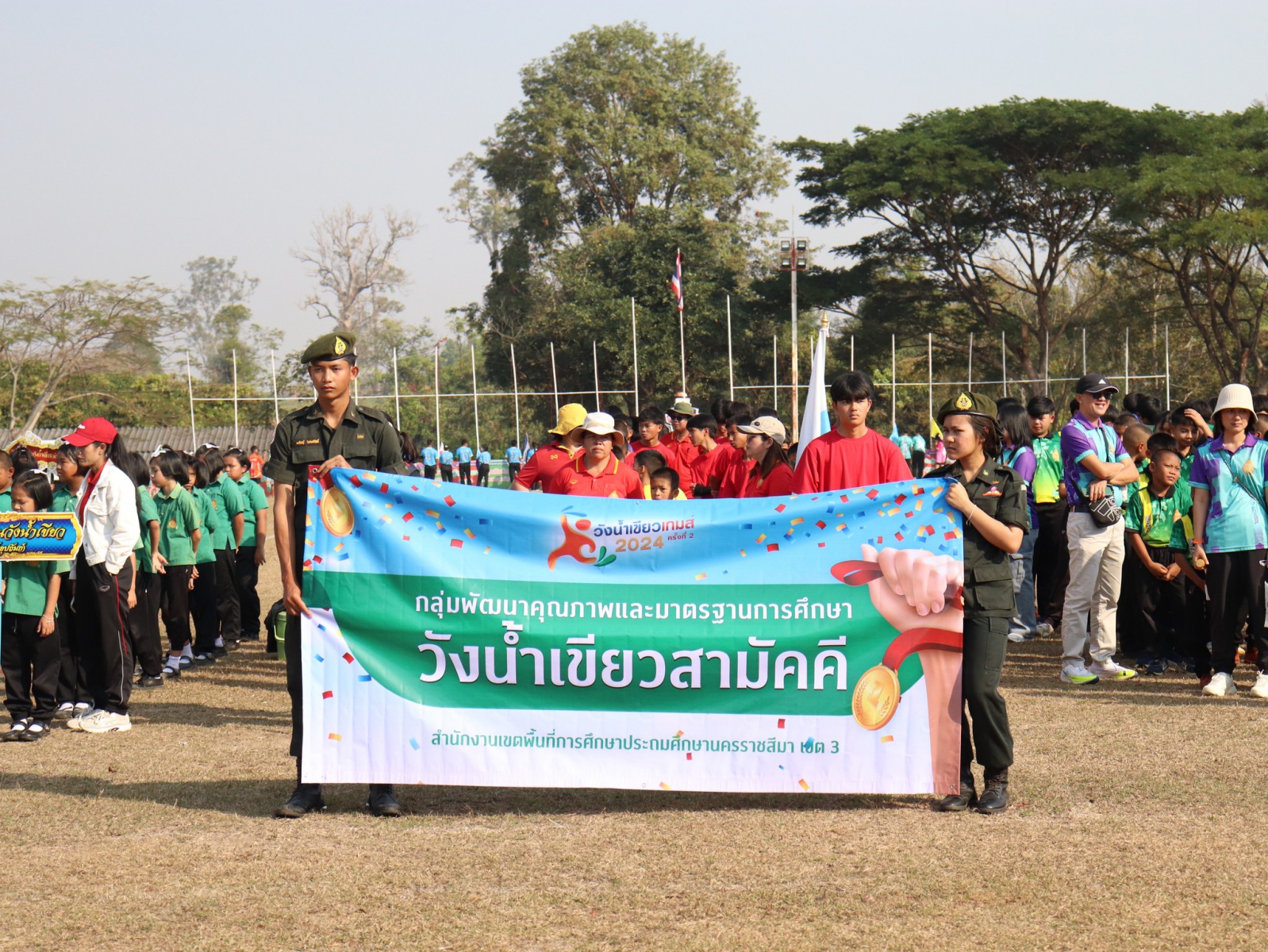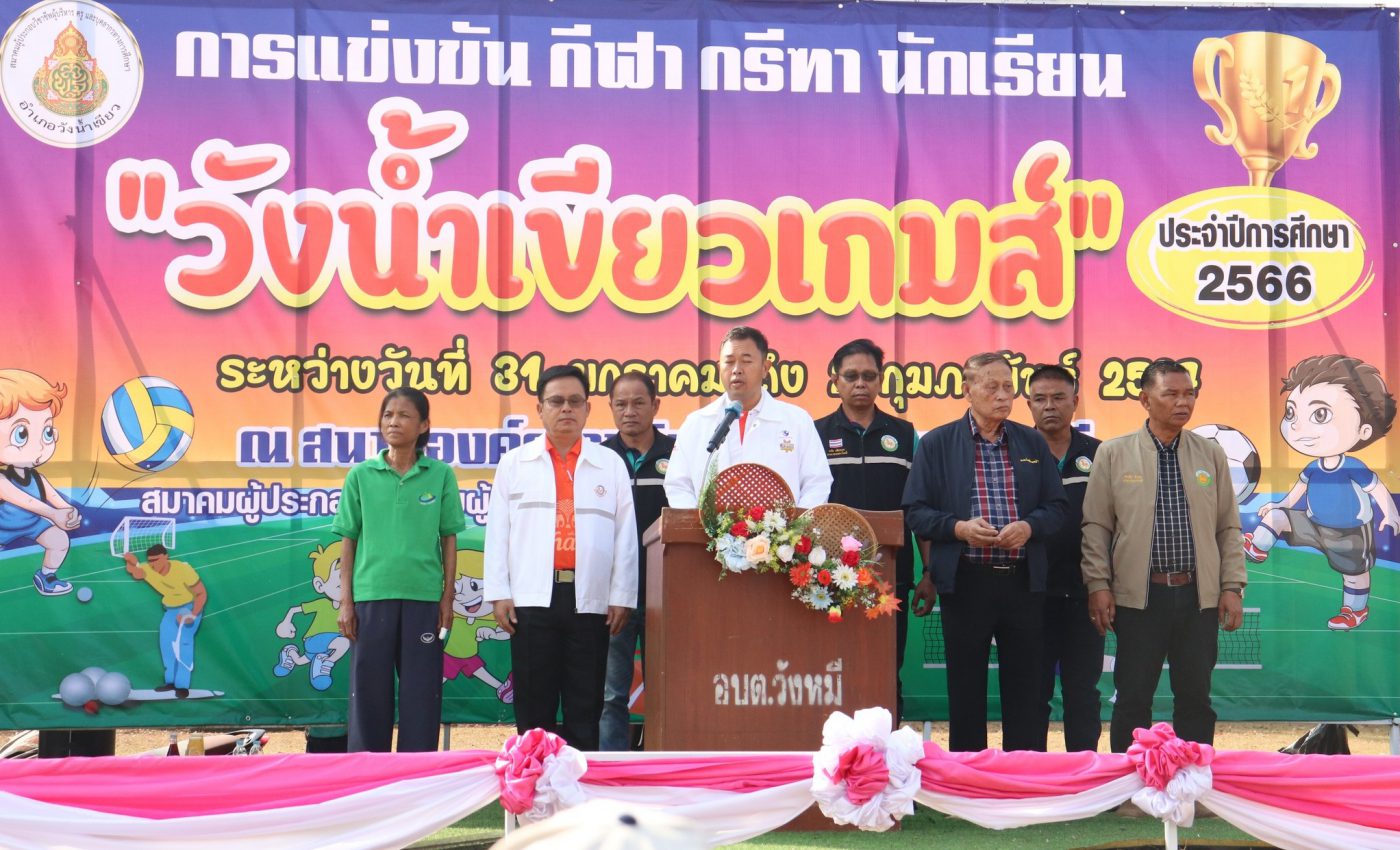 เมื่อวันที่ 31 มกราคม 2567 นางนภาพรรณ นาดี ผู้อำนวยการสำนักงานเขตพื้นที่การศึกษาประถมศึกษานครราชสีมา เขต3 มอบหมายให้นายเพิ่มวุธ บุบผามาตะนัง รองผอ.สพป.นครราชสีมา เขต3 ร่วมเป็นเกียรติในพิธีเปิดการแข่งขันกีฬา-กรีฑานักเรียน อำเภอวังน้ำเขียว สำนักงานเขตพื้นที่การศึกษาประถมศึกษานครราชสีมา เขต3 ประจำปีการศึกษา 2567 โดยมีวัตถุประสงค์เพื่อส่งเสริมให้นักเรียนได้เล่นกีฬา-กรีฑาในระดับอำเภอ รู้จักใช้เวลาว่างให้เป็นประโยชน์ ยกระดับมาตรฐานการเล่นกีฬา-กรีฑา รู้จักกฎ กติกา การเล่นกีฬา-กรีฑาประเภทต่าง ๆ รู้รักสามัคคี รู้แพ้ รู้ชนะ รู้อภัย ณ สนามกีฬาโรงเรียนบ้านท่าวังไทรสามัคคี และสนามองค์การบริหารส่วนตำบลวังหมี ตำบลวังหมี อำเภอวังน้ำเขียว จังหวัดนครราชสีมา (ภาพ/สุกัญญา เบี้ยวพา ข่าว/สุภรัฐ แป้นคงพะเนาว์)