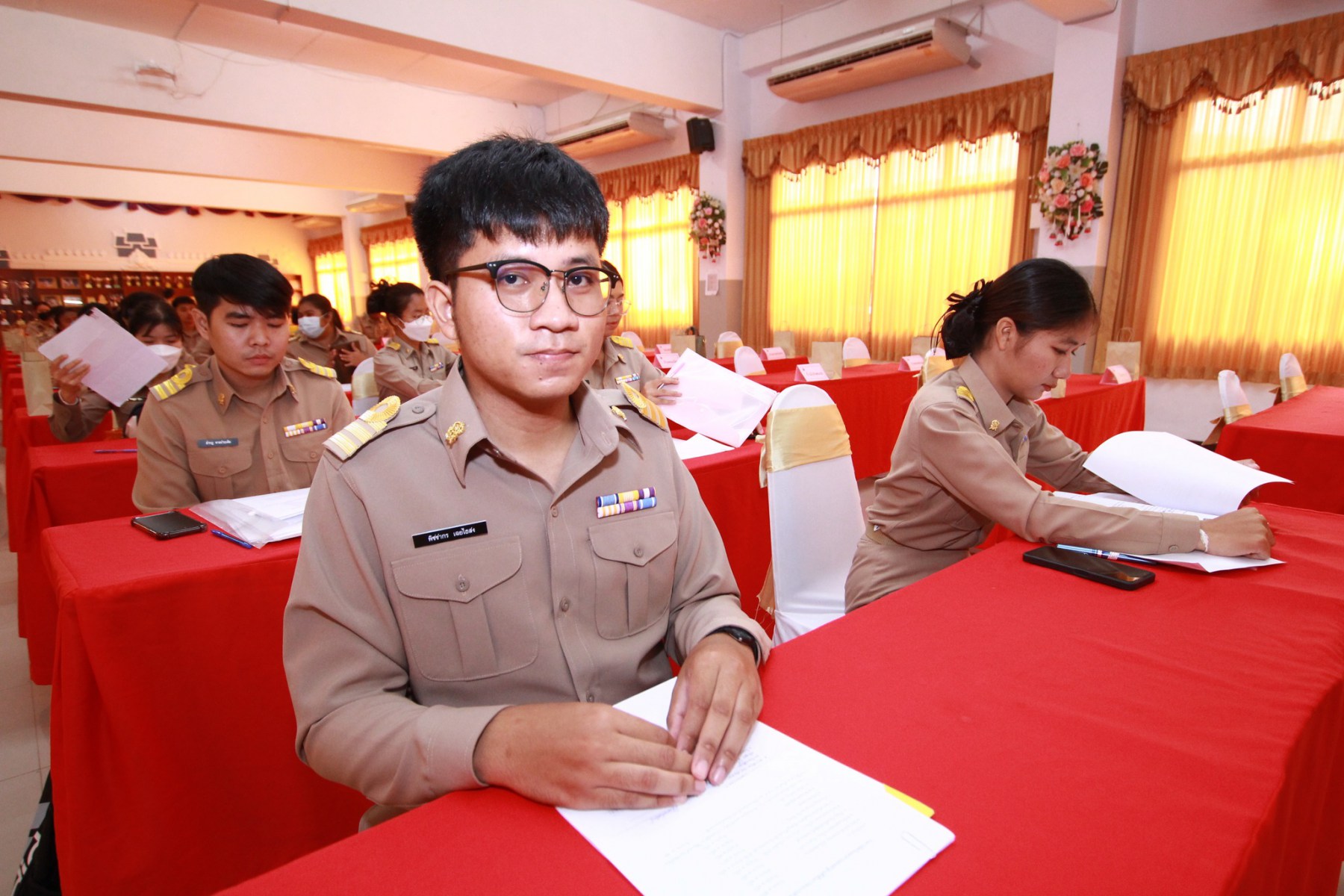 Home>>สพป.นครราชสีมา>>พิธีประดับอินทรธนูและปฐมนิเทศข้าราชการครูและบุคลากรทางการศึกษา ตำแหน่งครูผู้ช่วย บรรจุใหม่