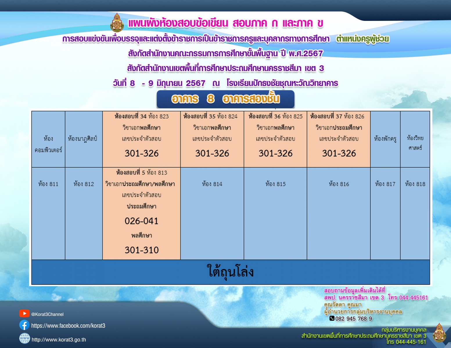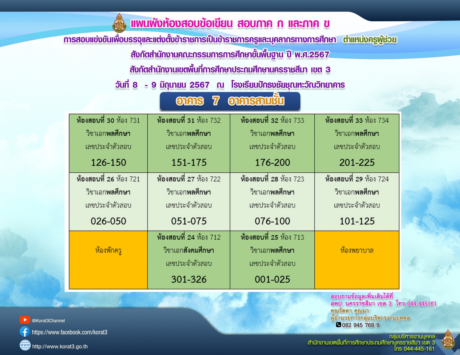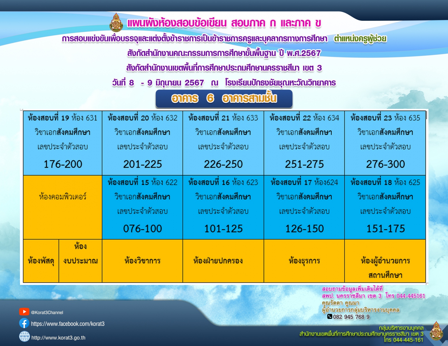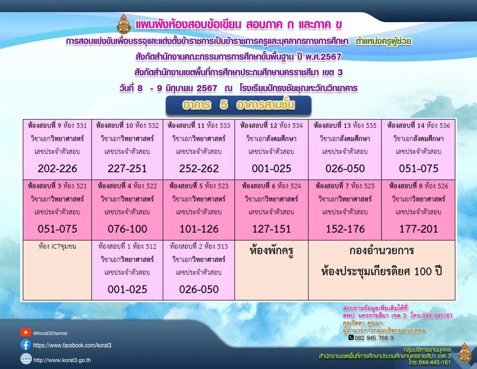 ประกาศรายชื่อผู้มีสิทธิและไม่มีสิทธิ-ขึ้นเว็บดาวน์โหลด สนามสอบโรงเรียนปักธงชัยชุณหะวัณวิทยาคาร Share: Previous Post ประกาศรายชื่อผู้ผ่านการคัดเลือกบุคคลเพื่อย้าย เปลี่ยนตำแหน่ง และโอนข้าราชการครูและบุคลากรทางการศึกษา และย้ายข้าราชการพลเรือนสามัญ โอนพนักงานส่วนท้องถิ่นและข้าราชการอื่น มาบรรจุและแต่งตั้งให้ดำรงตำแหน่งบุคลากรทางการศึกษาอื่น ตามมาตรา 38 ค. (2) Next Post การเรียกบรรจุผู้สอบแข่งขันได้ ตำแหน่งครูผู้ช่วย ปี พ.ศ.2566 รอบที่ 5 Related Articles ข่าวประชาสัมพันธ์ อบรมโครงการพัฒนาศักยภาพบุคลากร ประจำปีงบประมาณ พ.ศ.2566 ข่าวประชาสัมพันธ์ ขอขยายเวลารับทุนการศึกษา ระหว่างสำนักงานคณะกรรมการ สกสค. กับบริษัท ซีพี ออลล์ จำกัด (มหาชน) ประจำปี 2568 ข่าวประชาสัมพันธ์ ประกาศการขึ้นบัญชีผู้สอบแข่งขันได้ กรณีการนำรายชื่อผู้สอบแข่งขันได้ในบัญชีหนึ่งไปขึ้นบัญชีเป็นผู้สอบแข่งขันได้ในบัญชีอื่น เพื่อบรรจุและแต่งตั้งเข้ารับราชการเป็นข้าราชการครูและบุคลากรทางการศึกษา ตำแหน่งครูผู้ช่วย ข่าวประชาสัมพันธ์ การรับสมัครผู้เข้ารับการพัฒนานักบริหารระดับสูง กระทรวงศึกษาธิการ (นบส.ศธ.) รุ่นที่ 12 ข่าวประชาสัมพันธ์ ประกาศรายชื่อผู้มีสิทธิเข้ารับการคัดเลือกบุคคลเพื่อย้าย เปลี่ยนตำแหน่ง และโอนข้าราชการครูและบุคลากรทางการศึกษา และย้ายข้าราชการพลเรือนสามัญ โอนพนักงานส่วนท้องถิ่นและข้าราชการอื่น มาบรรจุและแต่งตั้งให้ดำรงตำแหน่งบุคลากรทางการศึกษาอื่น ตามมาตรา 38 ค.(2) ในตำแหน่งที่ว่าง สังกัดสำนักงานเขตพื้นที่การศึกษาประถมศึกษานครราชสีมา เขต 3