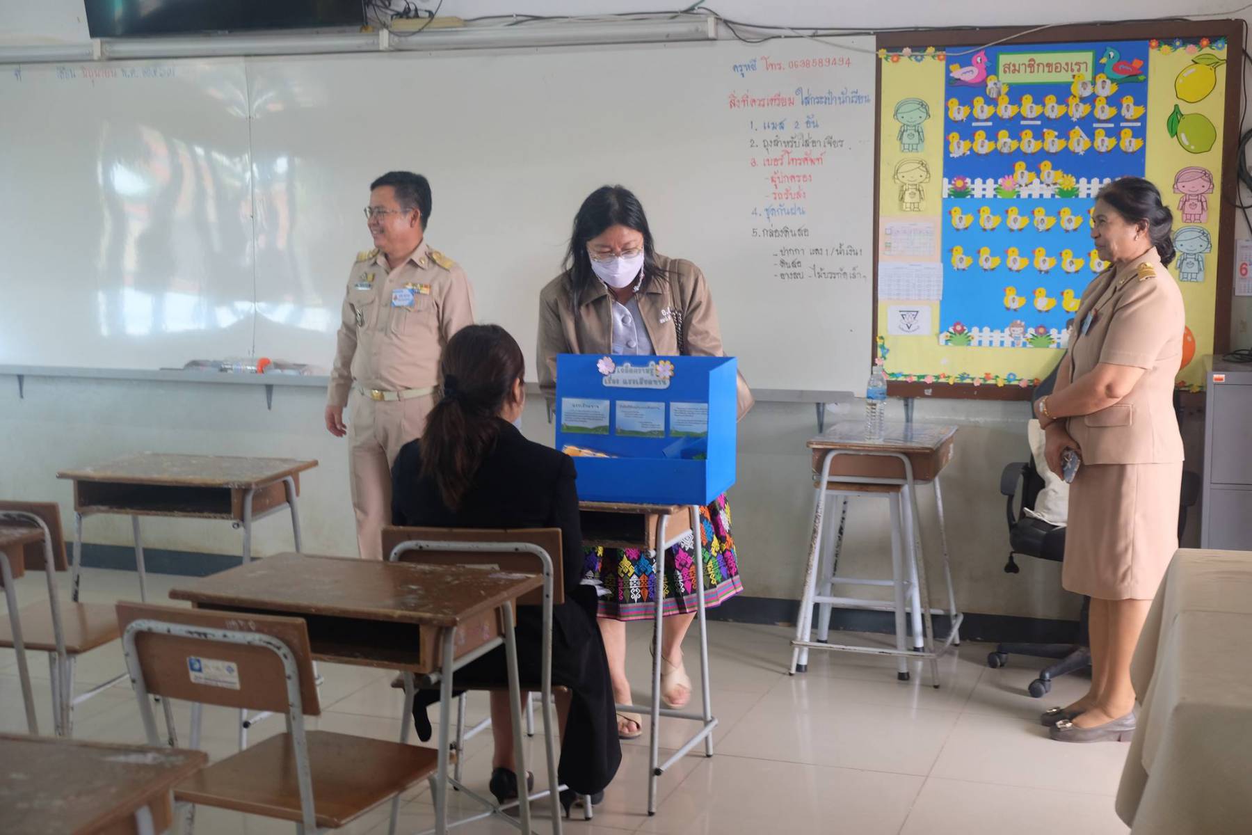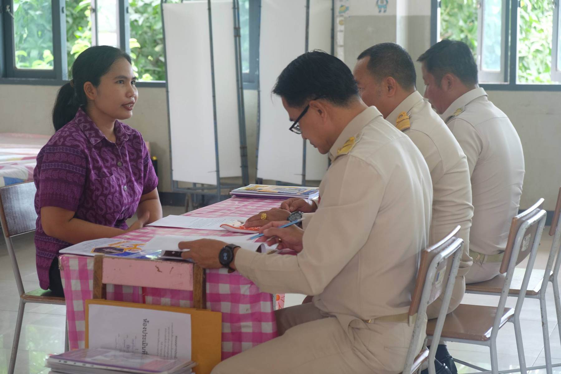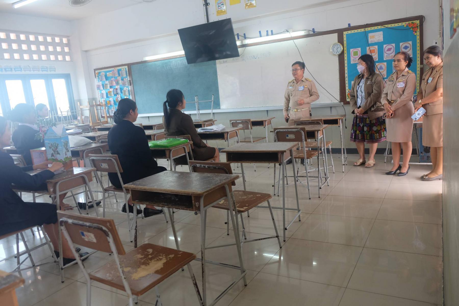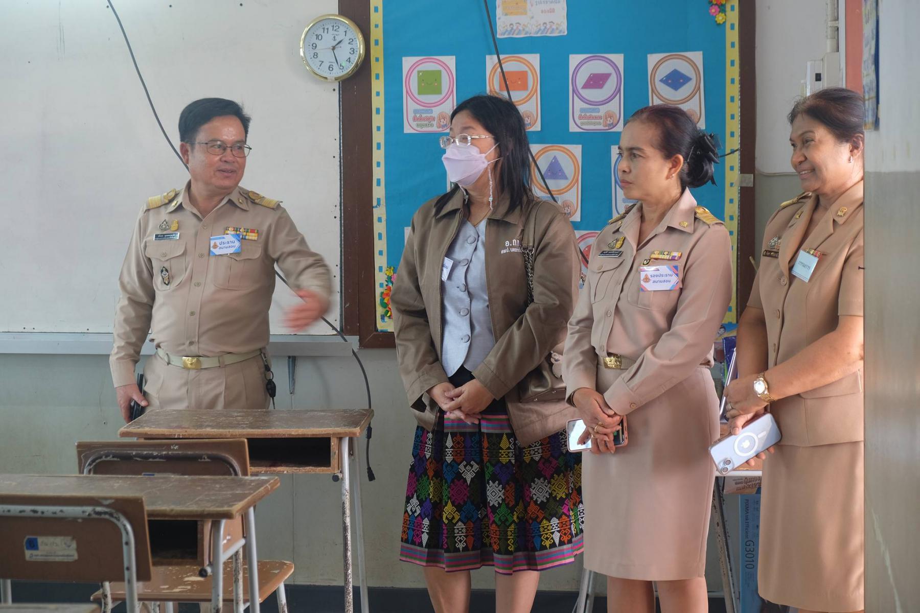 เมื่อวันที่ 22 มิถุนายน 2567 นางนภาพรรณ นาดี ผู้อำนวยการสำนักงานเขตพื้นที่การศึกษานครราชสีมา เขต 3 มอบหมายให้ นายเพิ่มวุธ บุบผามาตะนัง ประธานคณะกรรมการดำเนินการประเมินภาค ค ประจำสนามสอบฯ พร้อมด้วย นางปวีณา หอมตา นางบัญชา ศรีปัญญาวุฒิ อ.ก.ค.ศ เขตพื้นที่การศึกษาประถมศึกษานครราชสีมา เขต 3 นางสาวมยุรีย์ เนตรศิลานนท์ รองผอ.สพป.นครราชสีมา เขต 3 ตรวจเยี่ยมการดำเนินการประเมินภาค ค (สอบสัมภาษณ์) การสอบแข่งขันเพื่อบรรจุและแต่งตั้งบุคคลเข้า รับราชการเป็นข้าราชการครูและบุคลากรทางการศึกษา ตำแหน่งครูผู้ช่วย สังกัดสำนักงาน คณะกรรมการการศึกษา ขั้นพื้นฐาน ปี พ.ศ.2567 ณ โรงเรียนอนุบาลครบุรี อำเภอครบุรี จังหวัดนครราชสีมา