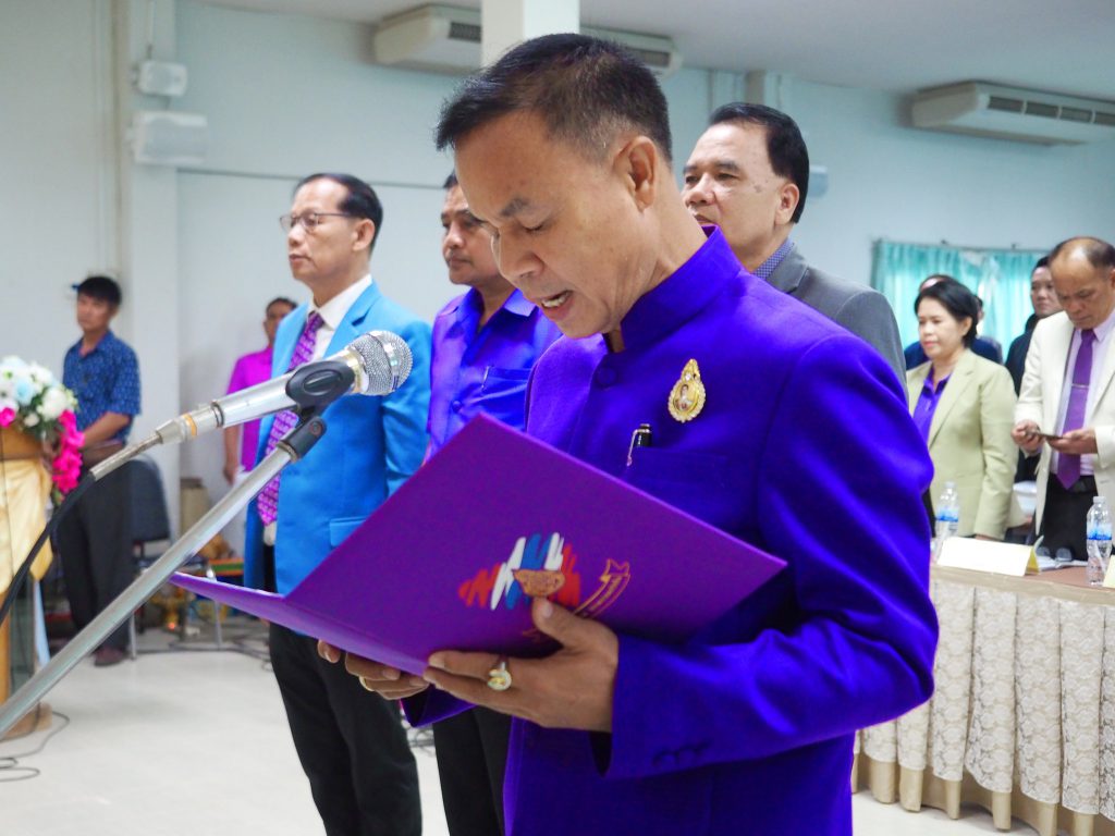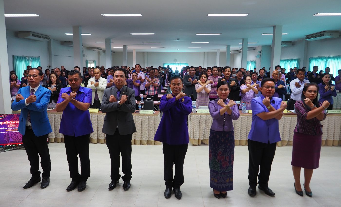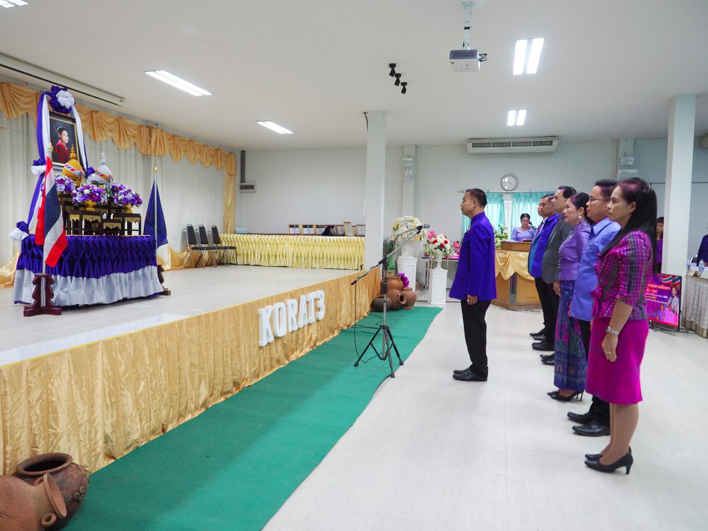 วันที่ 22 กุมภาพันธ์ 2567 นางนภาพรรณ นาดีผู้อำนวยการสำนักงานเขตพื้นที่การศึกษาประถมศึกษานครราชสีมาเขต 3 พร้อมด้วยนายอังคารพิสุทธิ์ สยามประโคน นายเพิ่มวุฒิ บุบผามาตะนัง นางสาวมยุรี เนตรศิลานนท์ รองผอสพป. นครราชสีมาเขต 3 ให้การต้อนรับนายปราโมทย์ แสนกล้า ประธานอนุคณะกรรมการในอก.ค.ศเขตพื้นที่การศึกษาประถมศึกษานครราชสีมาเขต 3 ประธานเปิดการประชุมผู้บริหารสถานศึกษาสำนักงานเขตพื้นที่การศึกษาประถมศึกษานครราชสีมาเขต 3 โอกาสเดียวกันนี้ได้เปิดกรวย เครื่องราชสักการะ นำผู้บริหารสำนักงานเขตพื้นที่การศึกษาประถมศึกษานครราชสีมาเขต 3 ผู้บริหารสถานศึกษาแต่งกายสวมเสื้อโทนสีม่วง กล่าวแสดงความจงรักภักดีแด่พระกนิษฐาธิราชเจ้า กรมสมเด็จพระเทพรัตนราชสุุดาฯ สยามบรมราชกุมารี