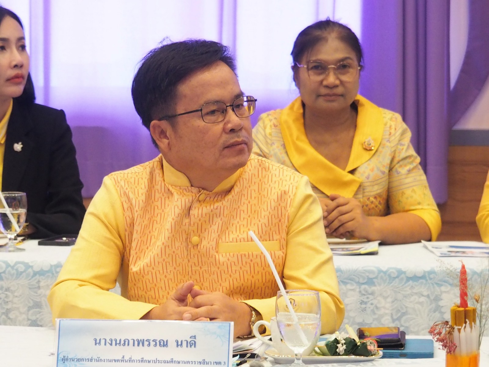 เมื่อวันที่ 17 มิถุนายน 2567 นางนภาพรรณ นาดี ผู้อำนวยการสำนักงานเขตพื้นที่การศึกษาประถมศึกษ เขต 3 มอบหมายให้ นายเพิ่มวุธ บุบผามาตะนัง รองผอ.สพป.นครราชสีมา เขต 3 นางบัญชา ศรีปัญญาวุฒิ ผอ. กลุ่มนโยบายและแผน นางสาวพรพิมล เปล่งคำคม ผอ.กลุ่มส่งเสริมการจัดการศึกษา นายประเชิญชัย เจริญครบุรี นักวิเคราะห์นโยบายและแผน ให้การต้อนรับ นายชัยณรงค์ ป้องบ้านเรือน ผู้ตรวจราชการกระทรวงศึกษาธิการ ลงพื้นที่ตรวจราชการและติดตามประเมินผลการดำเนินงาน ตามนโยบายการศึกษาของกระทรวงศึกษาธิการ ประจำปีงบประมาณ พ.ศ. 2567 ในพื้นที่จังหวัดนครราชสีมา ณ ห้องประชุม สุรสิริอักษร โรงเรียนสุรนารีวิทยา อำเภอเมือง จังหวัดนครราชสีมา