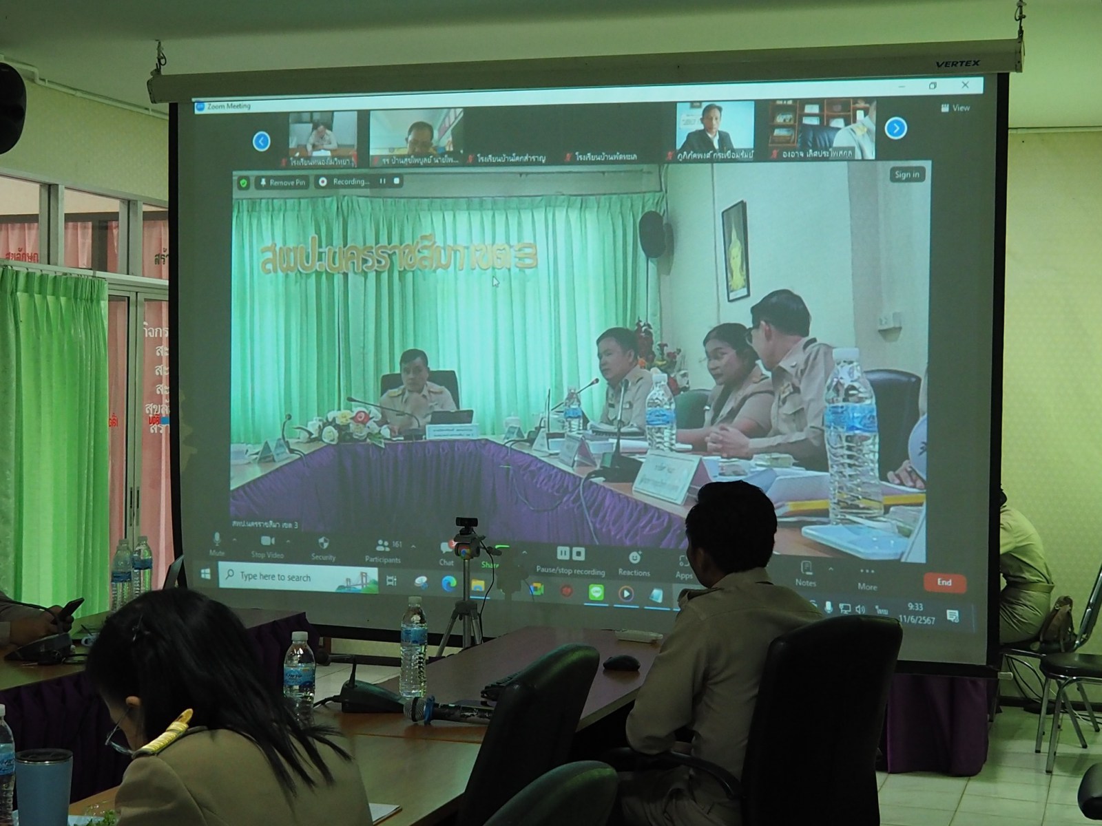 เมื่อวันที่ 11 มิถุนายน 2567 นางนภาพรรณ นาดี ผู้อำนวยการสำนักงานเขตพื้นที่การศึกษาประถมศึกษานครราชสีมา เขต 3 มอบหมายให้ นายอังคารพิสุทธ์ สยามประโคน รองผอ.สพป.นครราชสีมา เขต 3 ประธานการประชุมผู้บริหารสถานศึกษาในสังกัด ครั้งที่ 3/2567 พร้อมด้วย นายเพิ่มวุธ บุบผามาตะนัง นางสาวมยุรีย์ เนตรศิลานนท์ รองผอ.สพป.นครราชสีมา เขต 3 และผู้อำนวยการกลุ่ม/หน่วย โดยประชุมผ่านระบบ Zoom Meeting เพื่อมอบนโยบายในการบริหารจัดการเรียนการสอน ให้กับผู้บริหารสถานศึกษาในสังกัดนำไปปฏิบัติ ณ ห้องประชุมเบญจมาศ สำนักงานเขตพื้นที่การศึกษาประถมศึกษานครราชสีมา เขต 3