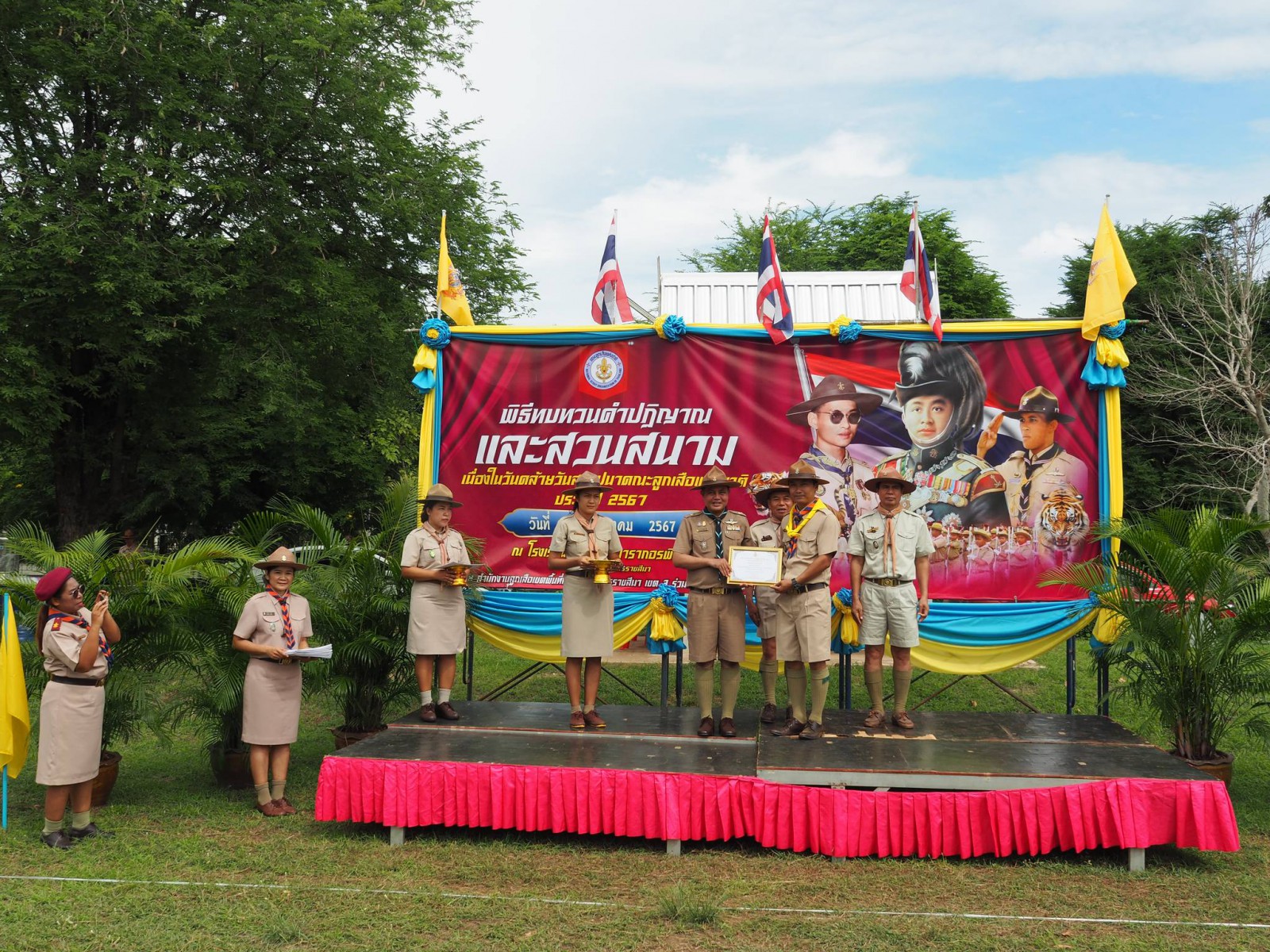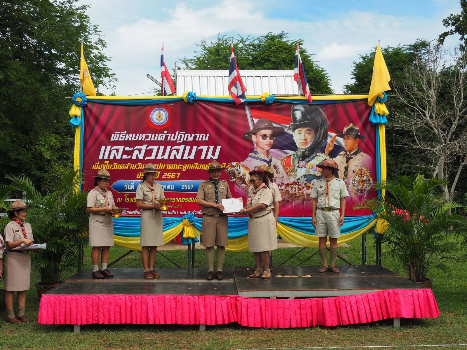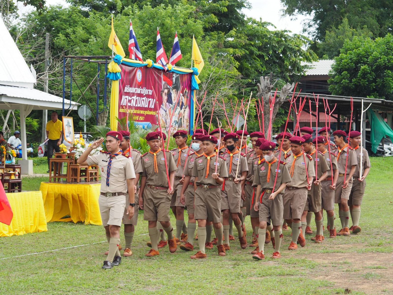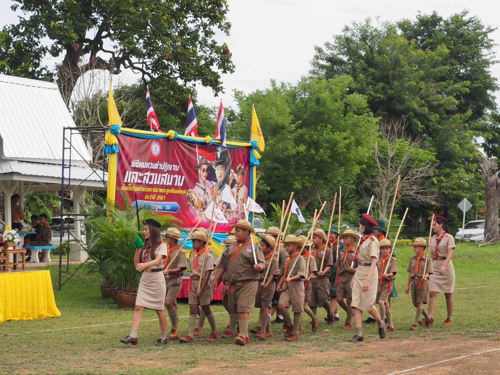 เมื่อวันที่ 1 กรกฏาคม 2567 นางนภาพรรณ นาดี ผู้อำนวยการลูกเสือเขตพื้นที่การศึกษานครราชสีมา เขต 3 มอบหมายให้ นายอังคารพิสุทธ์ สยามประโคน รองผู้อำนวยการลูกเสือเขตพื้นที่การศึกษานครราชสีมา เขต 3 เป็นประธานในพิธีทบทวนคำปฏิญาณและสวนสนามเนื่องในวันคล้ายวันสถาปนาคณะลูกเสือแห่งชาติ ประจำปี 2567 เพื่อน้อมรำลึกถึงพระมหากรุณาธิคุณพระบาทสมเด็จพระมงกุฎเกล้าเจ้าอยู่หัวรัชกาลที่ 6 พระผู้พระราชทานกำเนิดลูกเสือไทย ประกอบกับการทบทวนคำปฏิญาณและสวนสนามของเหล่าบรรดาบุคลากรทางการลูกเสือ ผู้บังคับบัญชา ลูกเสือ เนตรนารี เพื่อแสดงออกถึงความจงรักภักดีต่อพระบาทสมเด็จพระเจ้าอยู่หัว รัชกาลที่ 10 พระประมุข ขอบคุณะลูกเสือแห่่งชาติ และการจัดกิจกรรมบำเพ็ญประโยชน์ ณ บริเวณสนามโรงเรียนชุมชนบ้านนารากอรพิมพ์ อำเภอครบุรี จังหวัดนครราชสีมา โดยสำนักงานลูกเสือเขตพื้นที่การศึกษานครราชสีมา เขต 3 ร่วมกับ สมาคมผู้บริหารสถานศึกษาครบุรี มีโรงเรียนที่เข้าร่วมพิธี จำนวน 29 โรงเรียนในสังกัดสำนักงานลูกเสือเขตพื้นที่การศึกษา ประกอบด้วย ผู้กำกับลูกเสือ 107 นาย ลูกเสือสำรอง 22 นาย เนตรนารีสำรอง 24 นาย ลูกเสือสามัญ 347 นาย เนตรนารีสามัญ 323 นาย ลูกเสือสามัญรุ่นใหญ่ 122 นาย เนตรนารีสามัญรุ่นใหญ่ 110 นาย รวม 1052 นาย