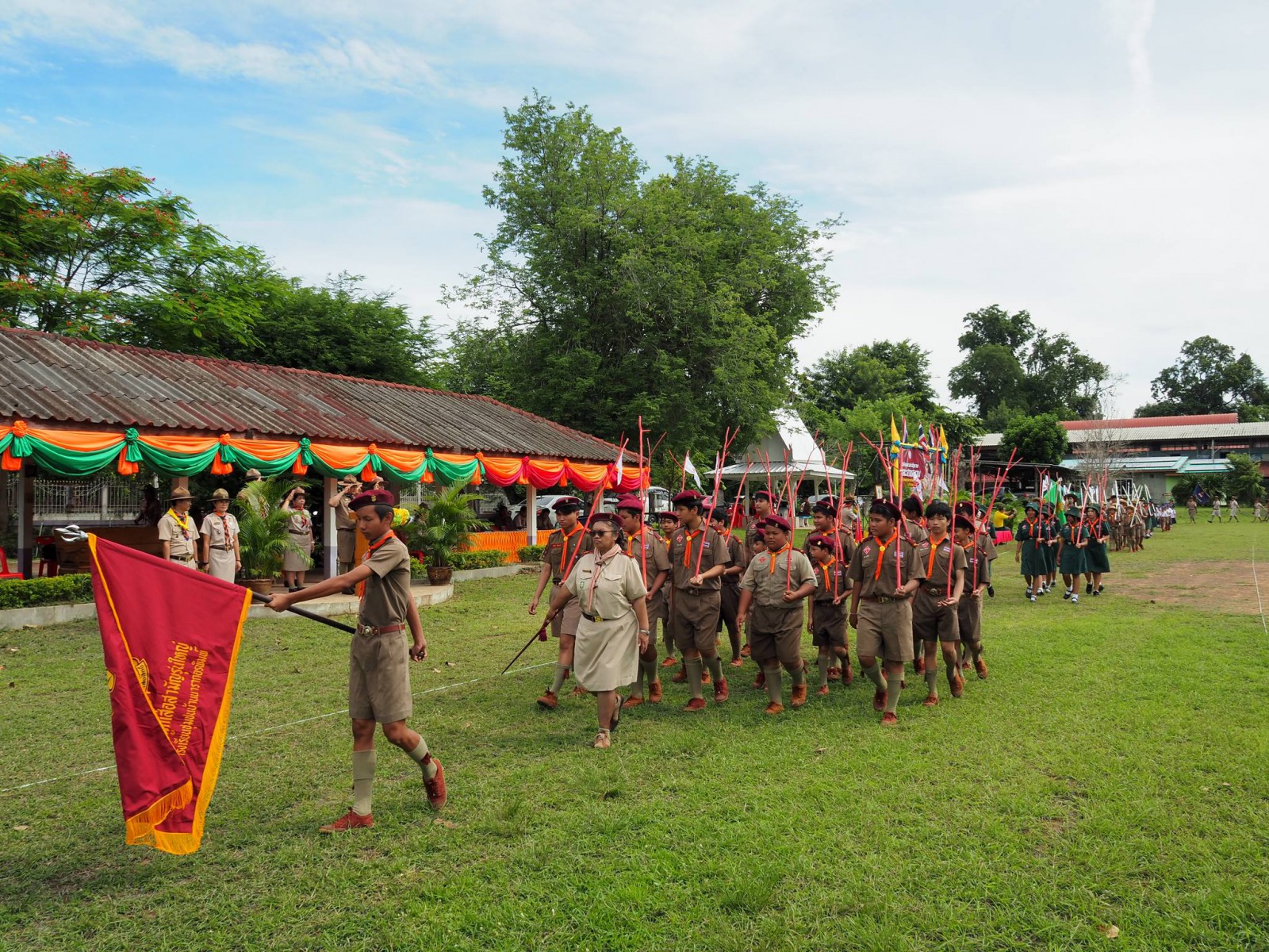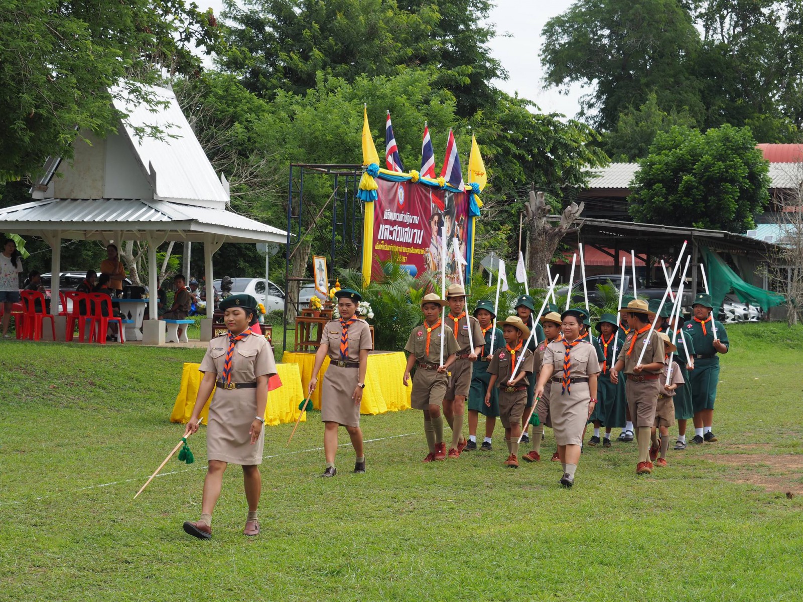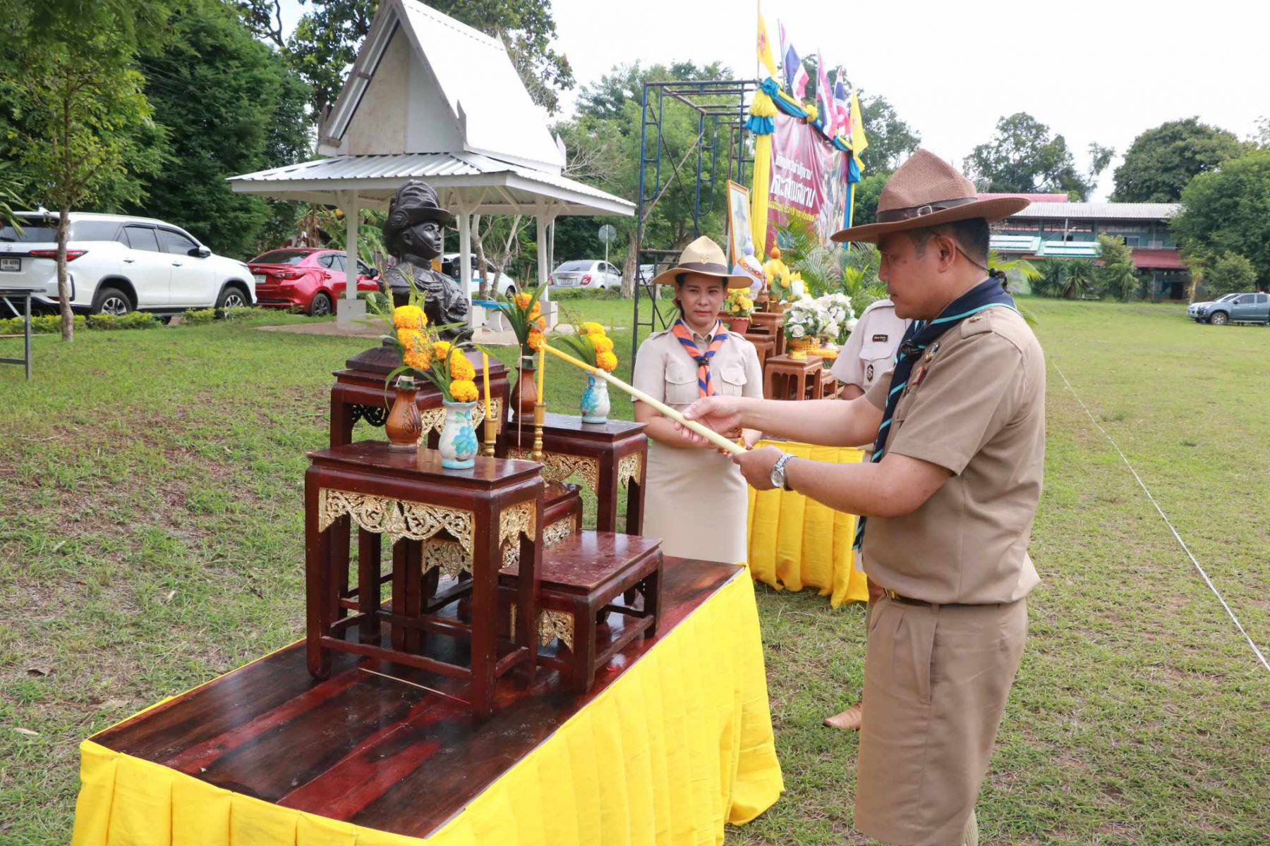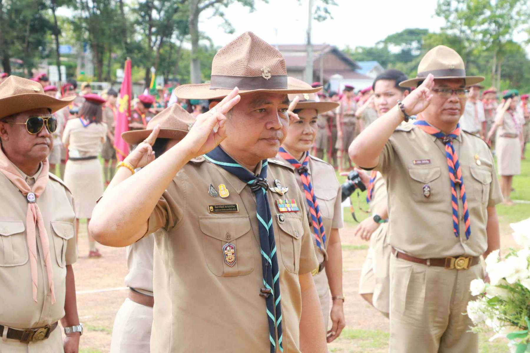 เมื่อวันที่ 1 กรกฏาคม 2567 นางนภาพรรณ นาดี ผู้อำนวยการลูกเสือเขตพื้นที่การศึกษานครราชสีมา เขต 3 มอบหมายให้ นายอังคารพิสุทธ์ สยามประโคน รองผู้อำนวยการลูกเสือเขตพื้นที่การศึกษานครราชสีมา เขต 3 เป็นประธานในพิธีทบทวนคำปฏิญาณและสวนสนามเนื่องในวันคล้ายวันสถาปนาคณะลูกเสือแห่งชาติ ประจำปี 2567 เพื่อน้อมรำลึกถึงพระมหากรุณาธิคุณพระบาทสมเด็จพระมงกุฎเกล้าเจ้าอยู่หัวรัชกาลที่ 6 พระผู้พระราชทานกำเนิดลูกเสือไทย ประกอบกับการทบทวนคำปฏิญาณและสวนสนามของเหล่าบรรดาบุคลากรทางการลูกเสือ ผู้บังคับบัญชา ลูกเสือ เนตรนารี เพื่อแสดงออกถึงความจงรักภักดีต่อพระบาทสมเด็จพระเจ้าอยู่หัว รัชกาลที่ 10 พระประมุข ขอบคุณะลูกเสือแห่่งชาติ และการจัดกิจกรรมบำเพ็ญประโยชน์ ณ บริเวณสนามโรงเรียนชุมชนบ้านนารากอรพิมพ์ อำเภอครบุรี จังหวัดนครราชสีมา โดยสำนักงานลูกเสือเขตพื้นที่การศึกษานครราชสีมา เขต 3 ร่วมกับ สมาคมผู้บริหารสถานศึกษาครบุรี มีโรงเรียนที่เข้าร่วมพิธี จำนวน 29 โรงเรียนในสังกัดสำนักงานลูกเสือเขตพื้นที่การศึกษา ประกอบด้วย ผู้กำกับลูกเสือ 107 นาย ลูกเสือสำรอง 22 นาย เนตรนารีสำรอง 24 นาย ลูกเสือสามัญ 347 นาย เนตรนารีสามัญ 323 นาย ลูกเสือสามัญรุ่นใหญ่ 122 นาย เนตรนารีสามัญรุ่นใหญ่ 110 นาย รวม 1052 นาย