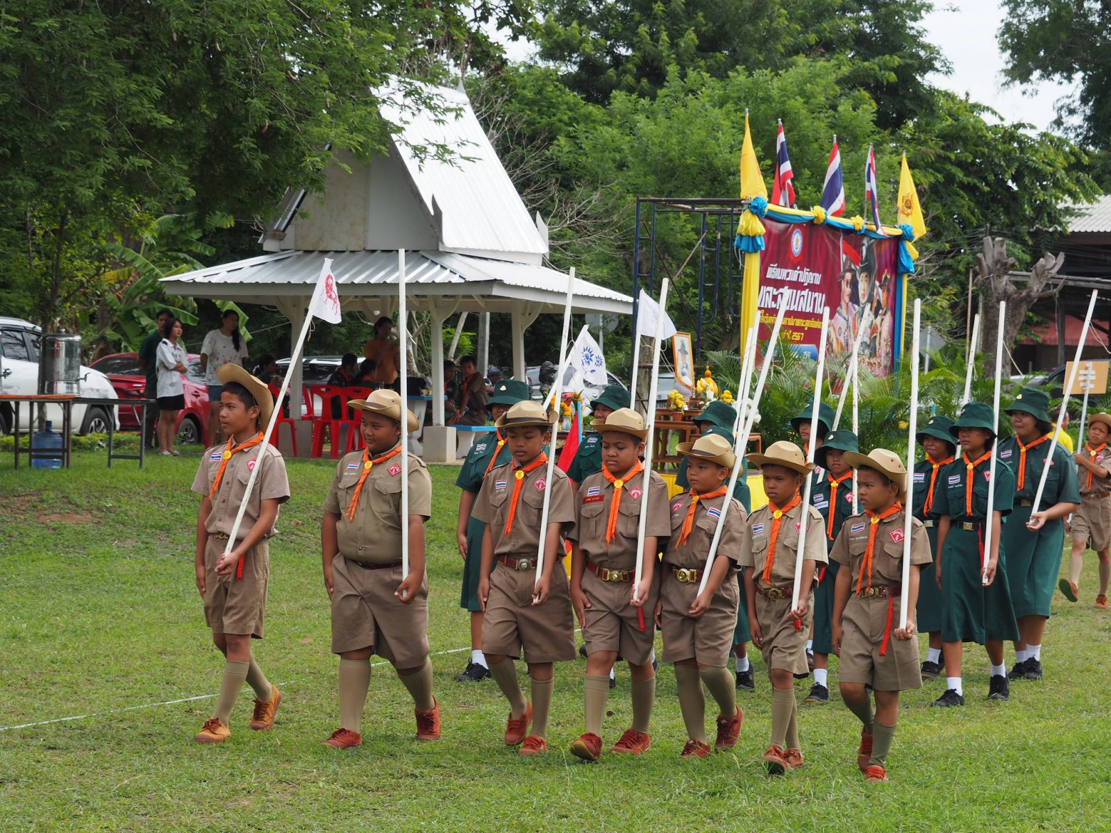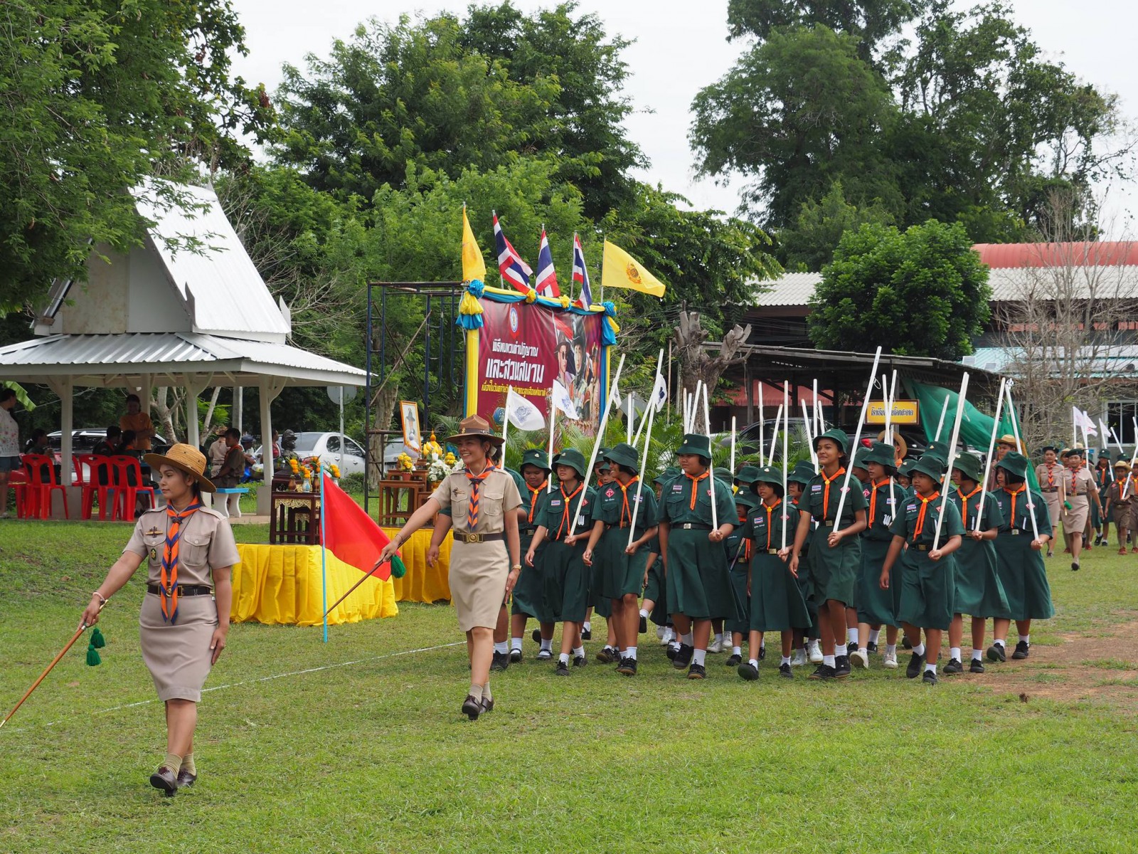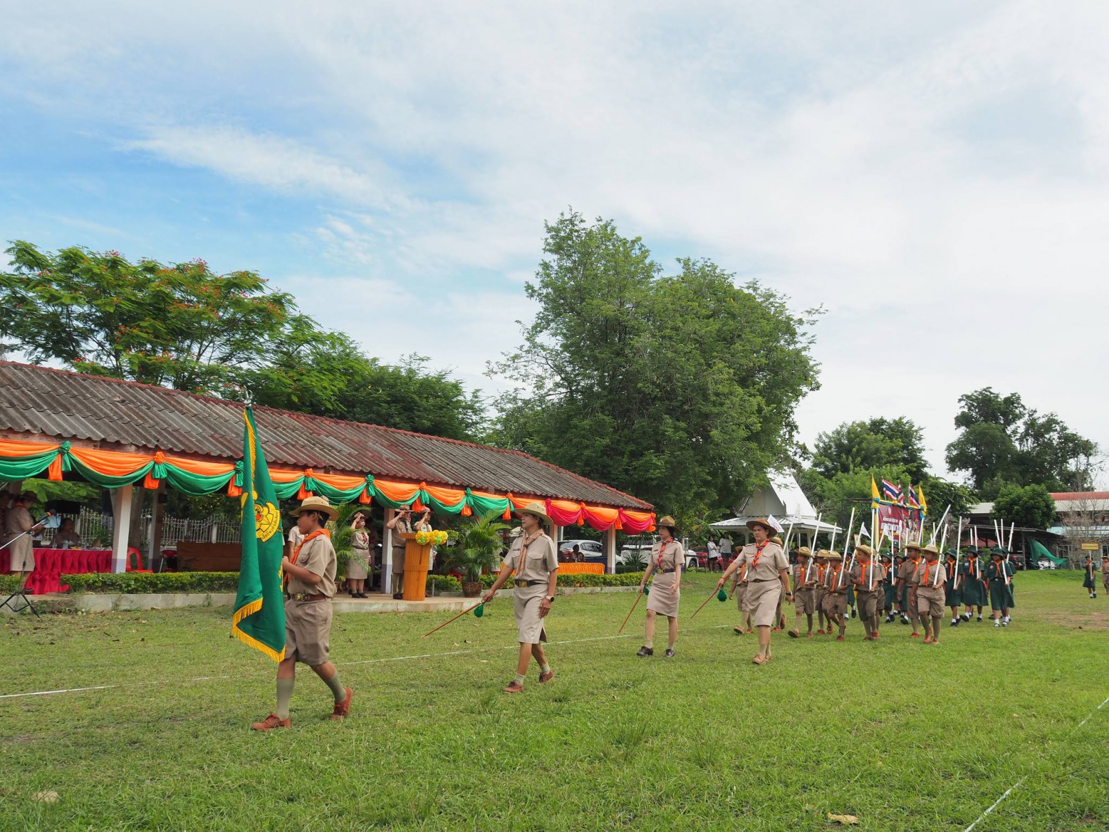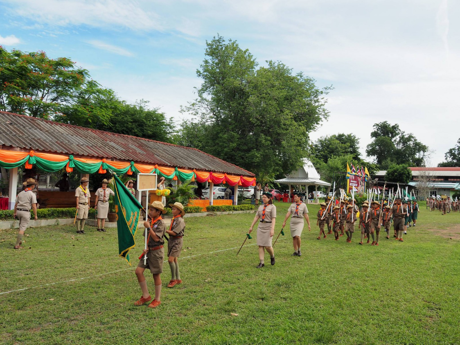 เมื่อวันที่ 1 กรกฏาคม 2567 นางนภาพรรณ นาดี ผู้อำนวยการลูกเสือเขตพื้นที่การศึกษานครราชสีมา เขต 3 มอบหมายให้ นายอังคารพิสุทธ์ สยามประโคน รองผู้อำนวยการลูกเสือเขตพื้นที่การศึกษานครราชสีมา เขต 3 เป็นประธานในพิธีทบทวนคำปฏิญาณและสวนสนามเนื่องในวันคล้ายวันสถาปนาคณะลูกเสือแห่งชาติ ประจำปี 2567 เพื่อน้อมรำลึกถึงพระมหากรุณาธิคุณพระบาทสมเด็จพระมงกุฎเกล้าเจ้าอยู่หัวรัชกาลที่ 6 พระผู้พระราชทานกำเนิดลูกเสือไทย ประกอบกับการทบทวนคำปฏิญาณและสวนสนามของเหล่าบรรดาบุคลากรทางการลูกเสือ ผู้บังคับบัญชา ลูกเสือ เนตรนารี เพื่อแสดงออกถึงความจงรักภักดีต่อพระบาทสมเด็จพระเจ้าอยู่หัว รัชกาลที่ 10 พระประมุข ขอบคุณะลูกเสือแห่่งชาติ และการจัดกิจกรรมบำเพ็ญประโยชน์ ณ บริเวณสนามโรงเรียนชุมชนบ้านนารากอรพิมพ์ อำเภอครบุรี จังหวัดนครราชสีมา โดยสำนักงานลูกเสือเขตพื้นที่การศึกษานครราชสีมา เขต 3 ร่วมกับ สมาคมผู้บริหารสถานศึกษาครบุรี มีโรงเรียนที่เข้าร่วมพิธี จำนวน 29 โรงเรียนในสังกัดสำนักงานลูกเสือเขตพื้นที่การศึกษา ประกอบด้วย ผู้กำกับลูกเสือ 107 นาย ลูกเสือสำรอง 22 นาย เนตรนารีสำรอง 24 นาย ลูกเสือสามัญ 347 นาย เนตรนารีสามัญ 323 นาย ลูกเสือสามัญรุ่นใหญ่ 122 นาย เนตรนารีสามัญรุ่นใหญ่ 110 นาย รวม 1052 นาย