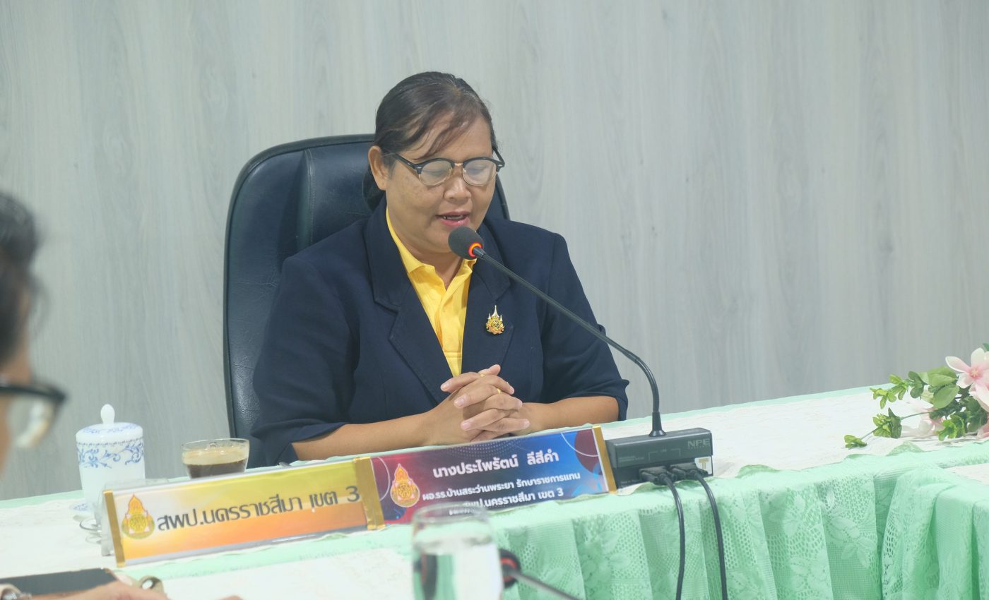 เมื่อวันที่ 4 กรกฎาคม 2567 นางนภาพรรณ นาดี ผู้อำนวยการสำนักงานเขตพื้นที่การศึกษาประถมศึกษานครราชสีมา เขต 3 มอบหมายให้ นางประไพรัตน์ ลีสีคำ ผู้อำนวยการโรงเรียนบ้านสระว่านพระยา รักษาราชการแทน ผู้อำนวยการสำนักงานเขตพื้นที่การศึกษาประถมศึกษานครราชสีมา เขต 3 พร้อมด้วยผู้อำนวยการกลุ่ม/หน่วย ทุกกลุ่ม และบุคลากรทางการศึกษา ร่วมรับชมรายการพฤหัสเช้า ข่าว สพฐ. ครั้งที่ 24 ประจำวันพฤหัสบดีที่ 4 กรกฎาคม 2567 เพื่อรับฟังนโยบายข่าวสาร ข้อราชการที่เกี่ยวข้อง จากสํานักงานคณะกรรมการการศึกษาขั้นพื้นฐาน และกระทรวงศึกษาธิการ ณ ห้องประชุมสุพรรณิการ์ สำนักงานเขตพื้นที่การศึกษาประถมศึกษานครราชสีมา เขต 3 และประชุมคณะกรรมการบริหารเขตพื้นที่การศึกษาประถมศึกษานครราชสีมา เขต 3