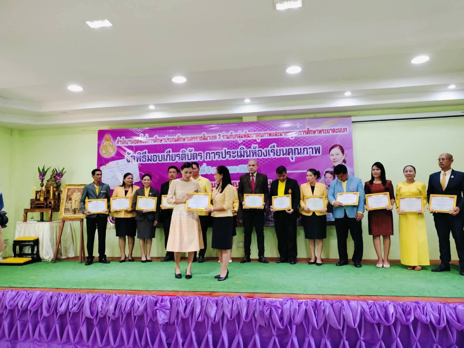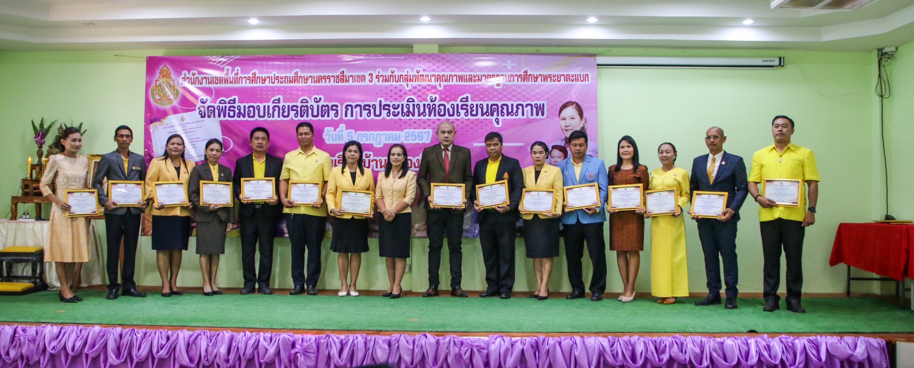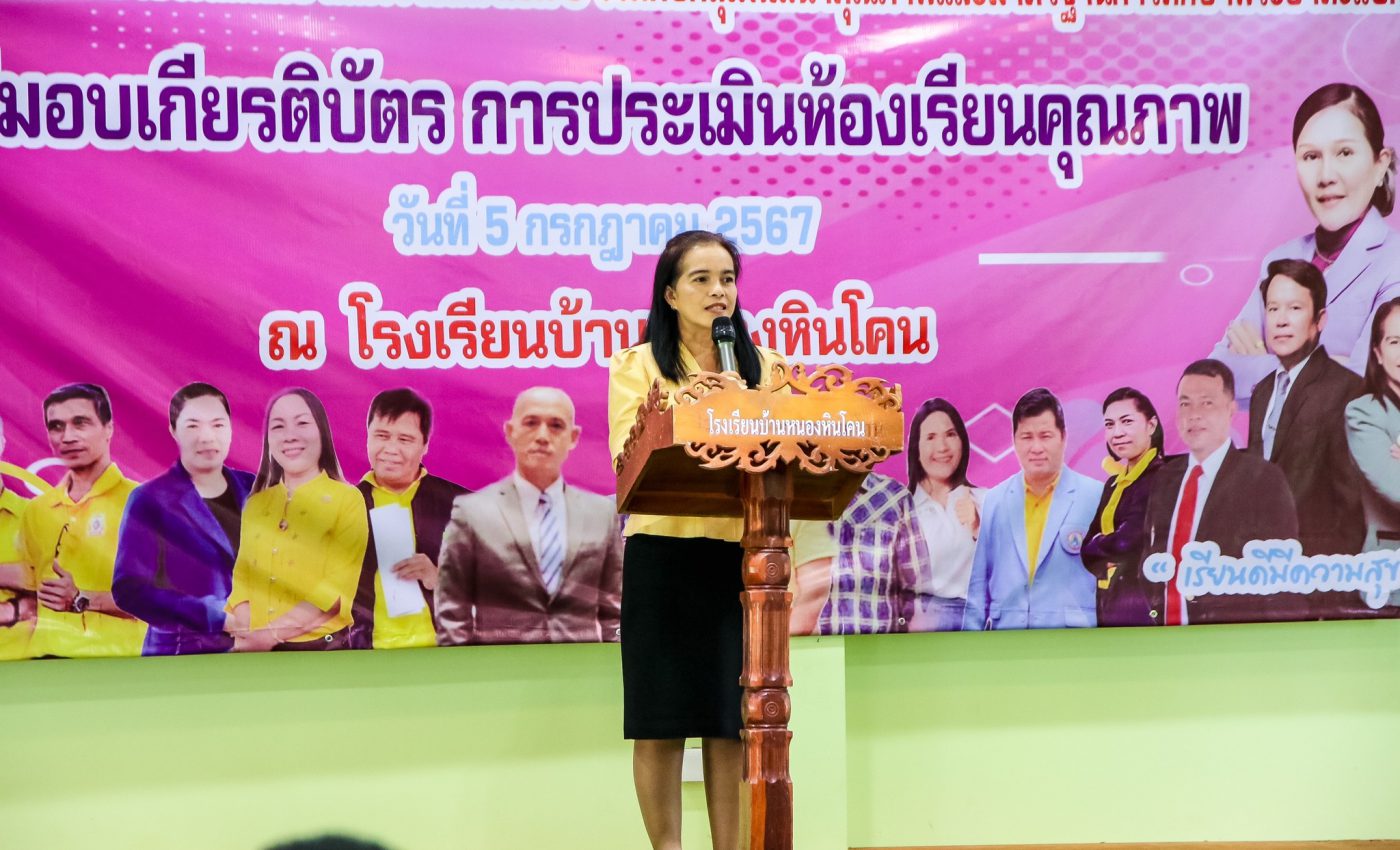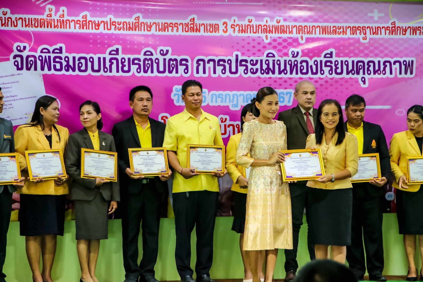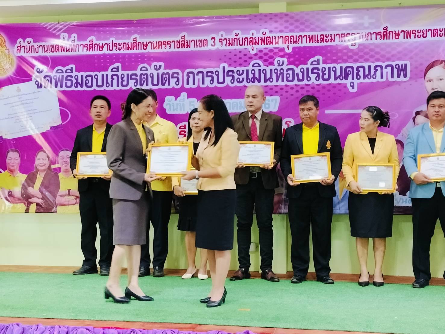 เมื่อวันที่ 5 มิถุนายน 2567 นางนภาพรรณ นาดี ผู้อำนวยการสำนักงานเขตพื้นที่การศึกษาประถมศึกษานครราชสีมา เขต 3 มอบหมายให้ นางสาวมยุรีย์ เนตรศิลานนท์ รองผู้อำนวยการสำนักงานเขตพื้นที่การศึกษาประถมศึกษานครราชสีมา เขต 3 ประธานเปิดกิจกรรม “พิธีมอบเกียรติบัตรแก่ผู้ผ่านการประเมินห้องเรียนคุณภาพตามโครงการ “ห้องเรียนน่าอยู่ คุณครูน่ารัก” และการประชุมกลุ่มพัฒนาคุณภาพและมาตรฐานการศึกษาพระยา ตะแบก” พร้อมด้วยนางสาวสุปรีดา สถิตธรรมรัตน์ นายเฉลิมรัฐ วงษ์วัฒนะ ศึกษานิเทศก์ ณ โรงเรียนบ้านหนองหินโคน อ.ครบุรี จ.นครราชสีมา