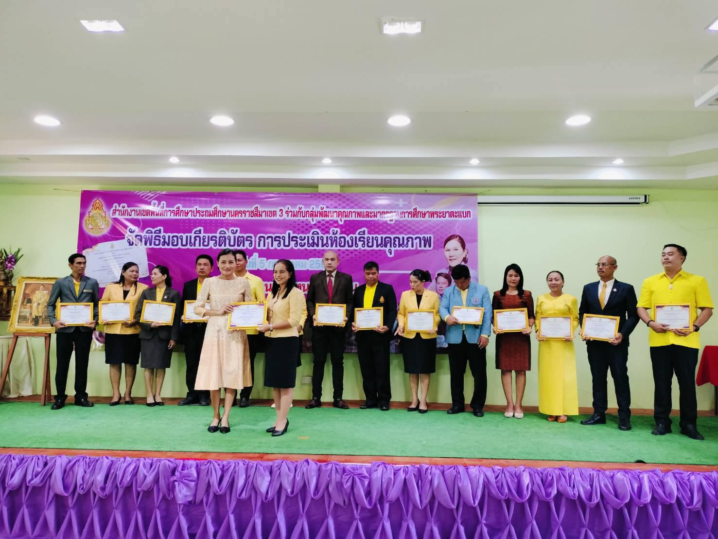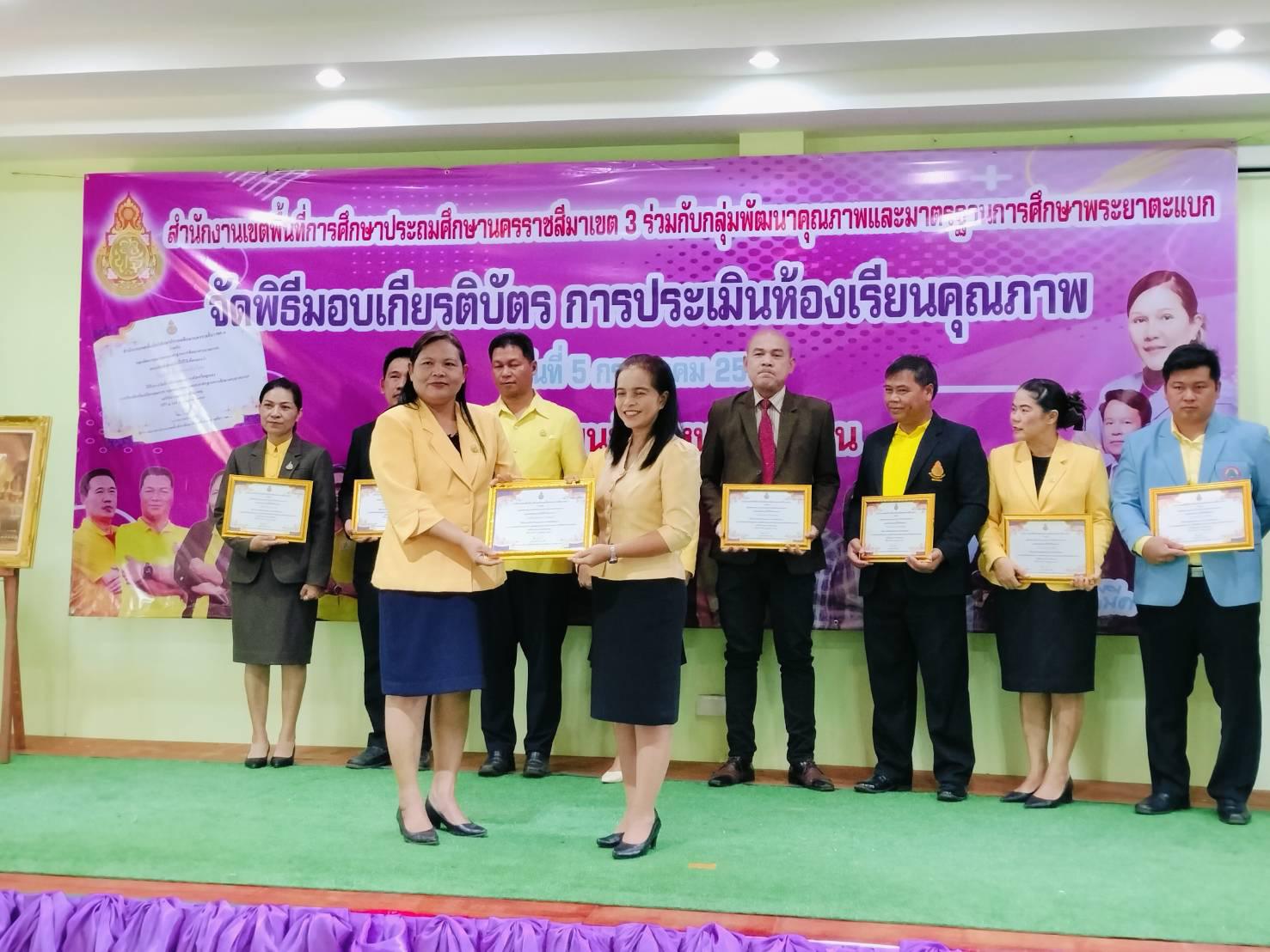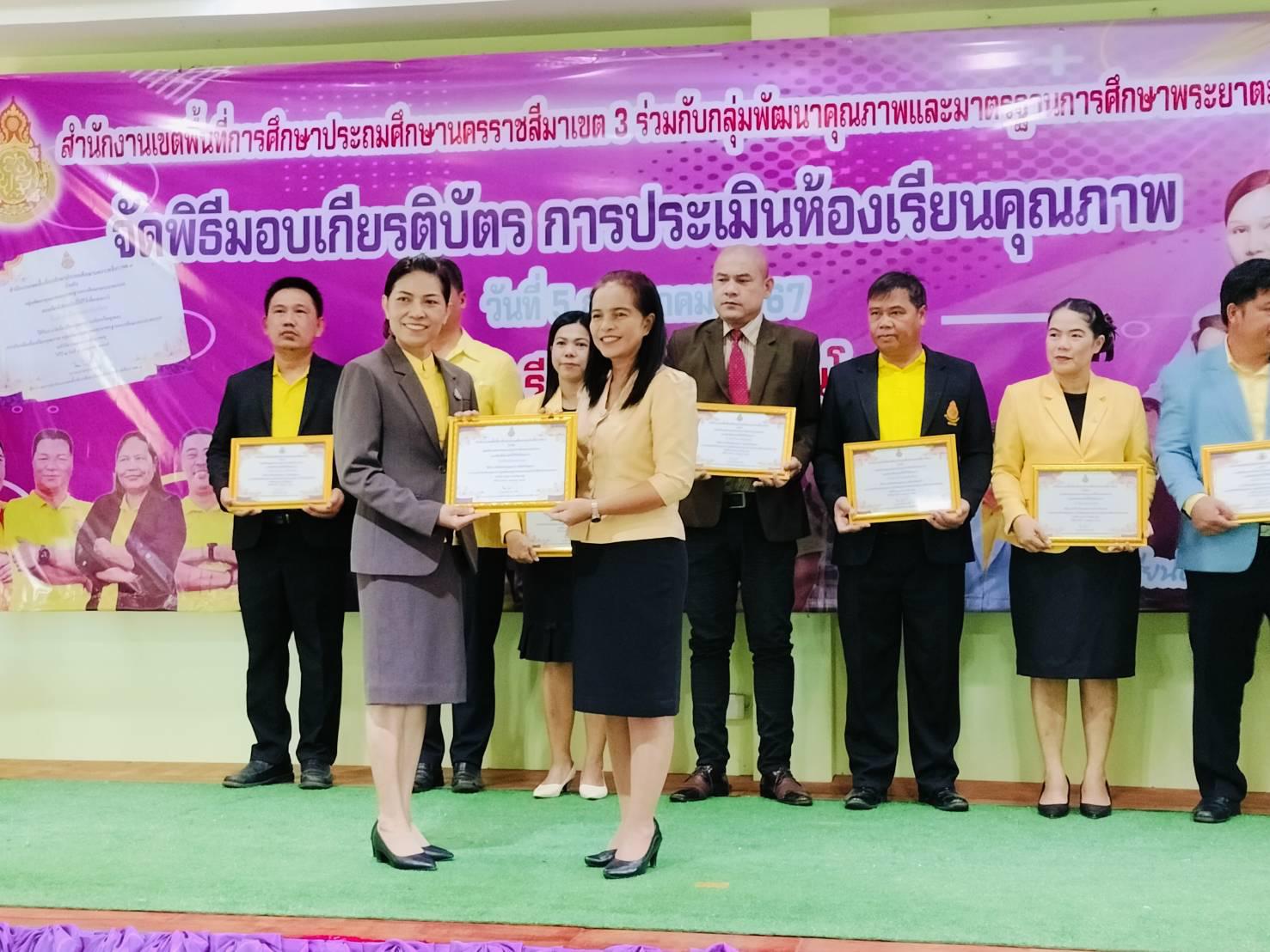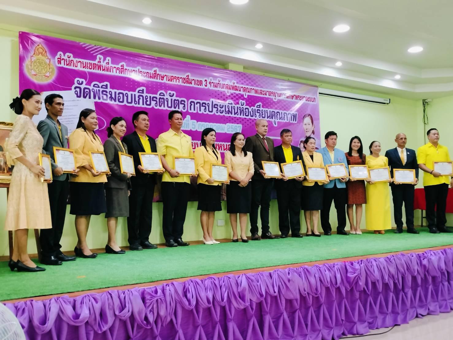 เมื่อวันที่ 5 มิถุนายน 2567 นางนภาพรรณ นาดี ผู้อำนวยการสำนักงานเขตพื้นที่การศึกษาประถมศึกษานครราชสีมา เขต 3 มอบหมายให้ นางสาวมยุรีย์ เนตรศิลานนท์ รองผู้อำนวยการสำนักงานเขตพื้นที่การศึกษาประถมศึกษานครราชสีมา เขต 3 ประธานเปิดกิจกรรม “พิธีมอบเกียรติบัตรแก่ผู้ผ่านการประเมินห้องเรียนคุณภาพตามโครงการ “ห้องเรียนน่าอยู่ คุณครูน่ารัก” และการประชุมกลุ่มพัฒนาคุณภาพและมาตรฐานการศึกษาพระยา ตะแบก” พร้อมด้วยนางสาวสุปรีดา สถิตธรรมรัตน์ นายเฉลิมรัฐ วงษ์วัฒนะ ศึกษานิเทศก์ ณ โรงเรียนบ้านหนองหินโคน อ.ครบุรี จ.นครราชสีมา