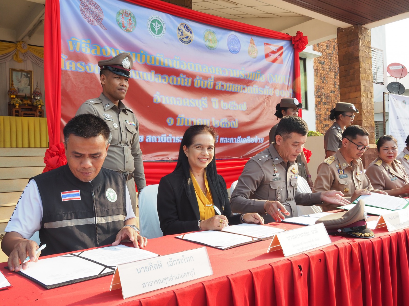 วันที่ 1 มีนาคม 2567 นางนภาพรรณ นาดี ผู้อำนวยการสำนักงานเขตพื้นที่การศึกษาประถมศึกษานครราชสีมาเขต 3มอบหมายให้นางสาวมยุรี เนตรศิลานนท์ รอง ผอ.สพป.นครราชสีมา เขต3 ร่วมเป็นเกียรติพิธีเปิด และร่วมทำความตกลงว่าด้วยความร่วมมือตามโครงการ “ถนนปลอดภัยขับขี่สวมหมวกนิรภัย 100 เปอร์เซ็นต์” สถานีตำรวจภูธรครบุรี นำโดยพันตำรวจเอก นพดล ช่วยบุญ ผู้กำกับการสถานีตำรวจภูธรครบุรี จังหวัดนครราชสีมา ได้จัดทำโครงการ “ถนนปลอดภัยขับขี่ สวมหมวกนิรกัย 100เปอร์เซ็นต์” เพื่อสร้างการตระหนักรู้ในการชับขี่รถอย่างปลอดภัย ปฏิบัติตามกฎหมาย โดยการขับขี่จักรยานยนต์ ให้สวมหมวกนิรภัยทุกครั้งนถนนต้นแบบ คือ ถนนสุขาภิบาล 14 เขตเทศบาลตำบลแชะ อำเภอครบุรี ซึ่งเป็นที่ตั้งส่วนราชการของอำเภอครบุรี จังหวัด โดยมีนายพีรวัฒน์ ธีระวัฒนา นายอำเภอครบุรี จังหวัดนครราชสีมา เป็นประธานในพิธีดังกล่าว