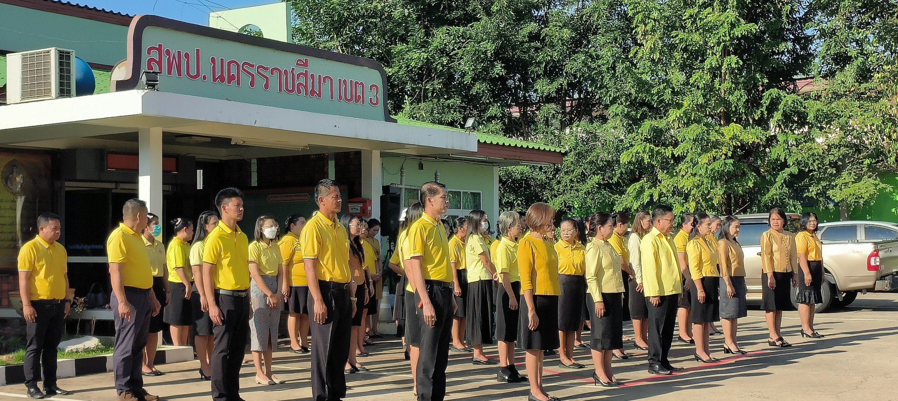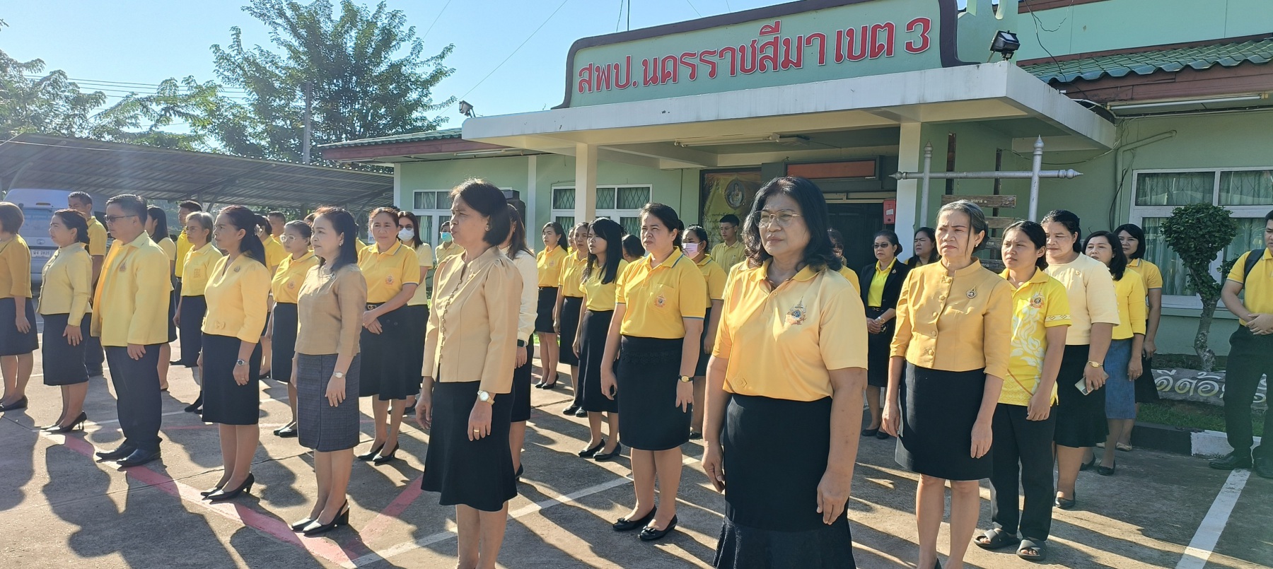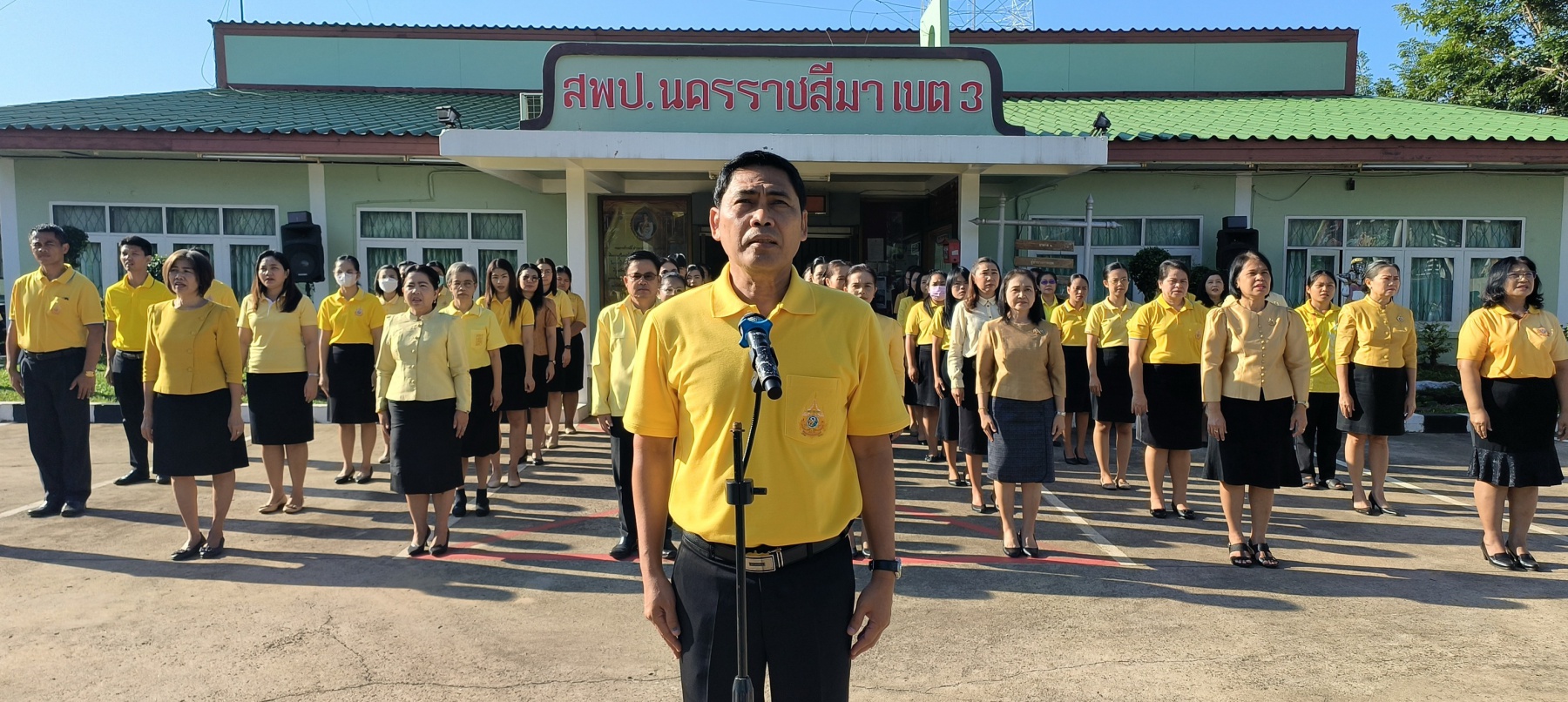 นายดำเนิน เพียรค้า ผู้อำนวยการสำนักงานเขตพื้นที่การศึกษาประถมศึกษานครราชสีมา เขต 3 พร้อมด้วย นายเพิ่มวุธ บุบผามาตะนัง นางสาวมยุรีย์ เนตรศิลานนท์ รองผู้อำนวยการสำนักงานเขตพื้นที่การศึกษาประถมศึกษานครราชสีมา เขต 3 และผู้อำนวยการกลุ่ม/หน่วยข้าราชการ บุคลากรทางการศึกษา และลูกจ้าง ร่วมกิจกรรมเข้าแถวเคารพธงชาติ สวดมนต์ไหว้พระ ปฏิญาณตนเป็นข้าราชการที่ดี และกล่าวปฏิญญาเขตพื้นที่การศึกษาสุจริต พร้อมแจ้ง ข้อราชการ แนวปฏิบัติ เพื่อรับทราบ และถือปฏิบัติร่วมกัน นับเป็นกิจกรรมที่ทางสำนักเขตพื้นที่การศึกษาประถมศึกษานครราชสีมา เขต 3 ได้ดำเนินการอย่างต่อเนื่อง