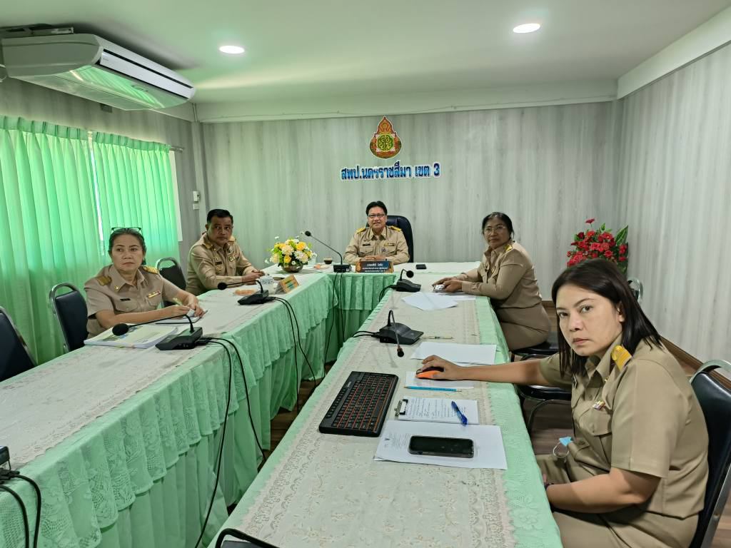 วันที่ 3 ธันวาคม 2567 นายปรีดี โสโป ผู้อำนวยการสำนักงานเขตพื้นที่การศึกษามัธยมศึกษาจันทบุรี-ตราด ซึ่งปฏิบัติหน้าที่ผู้อำนวยการสำนักงานเขตพื้นที่การศึกษาประถมศึกษานครราชสีมา เขต 3 พร้อมด้วยนายอังคารพิสุทธ์ รองผู้อำนวยการสำนักงานเขตพื้นที่การศึกษาประถมศึกษานครราชสีมา เขตพร้อมด้วยนางบัญชา ศรีปัญญาวุฒิ ผู้อำนวยการกลุ่มนโยบายและแผน เจ้าหน้าที่รับผิดชอบ ร่วมการประชุมชี้แจงแนวทางการจัดตั้งคำของบประมาณรายจ่ายประจำปีงบประมาณ พ.ศ. 2569 งบลงทุน ค่าครุภัณฑ์ ที่ดินและสิ่งก่อสร้างของโรงเรียนคุณภาพตามนโยบาย “๑ อำเภอ ๑ โรงเรียน คุณภาพ” ผ่านสื่ออิเล็กทรอนิกส์ ระบบ Zoom Cloud Meeting ณ ห้องประชุมสุพรรณนิการ์ สพป.นครราชสีมา เขต3