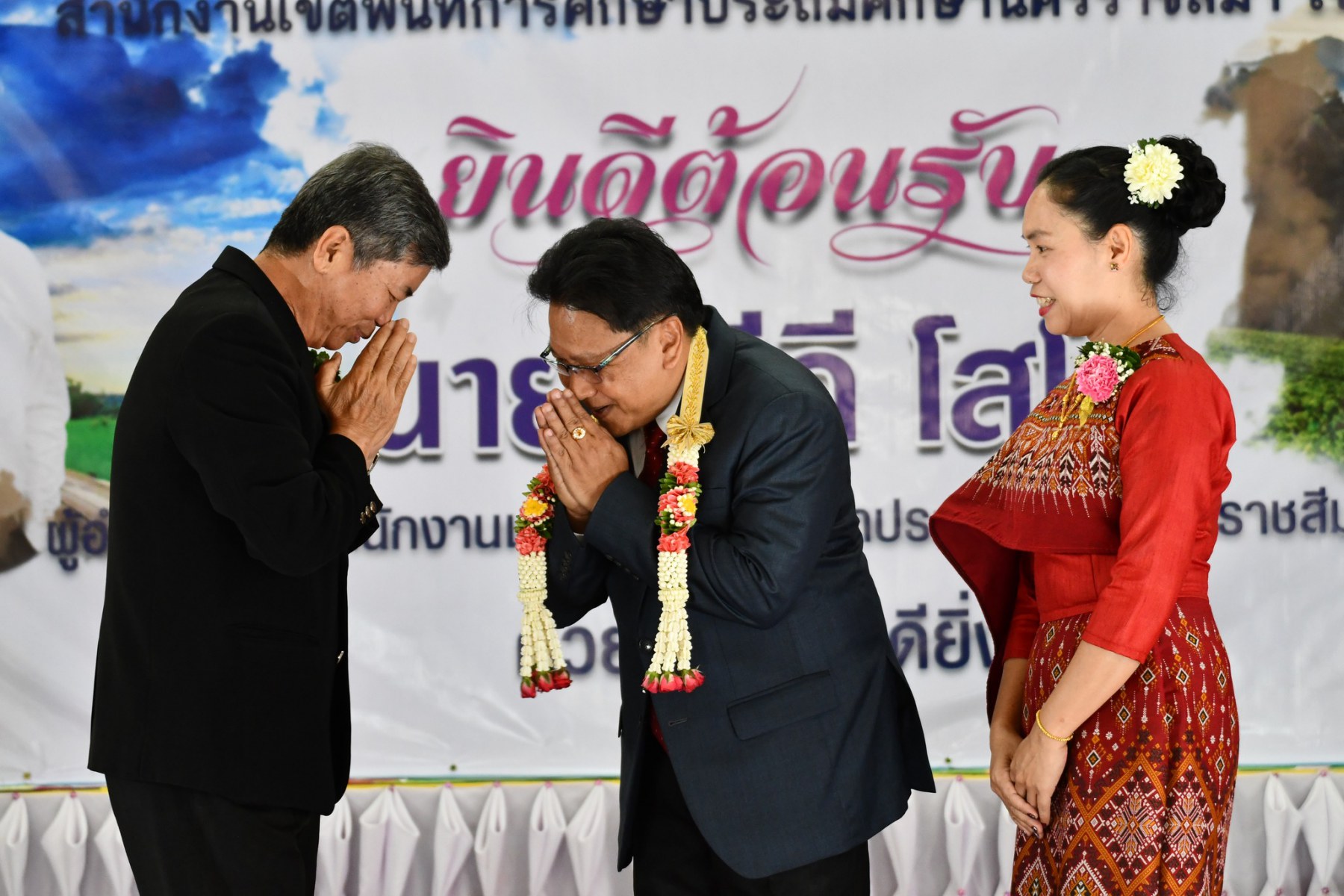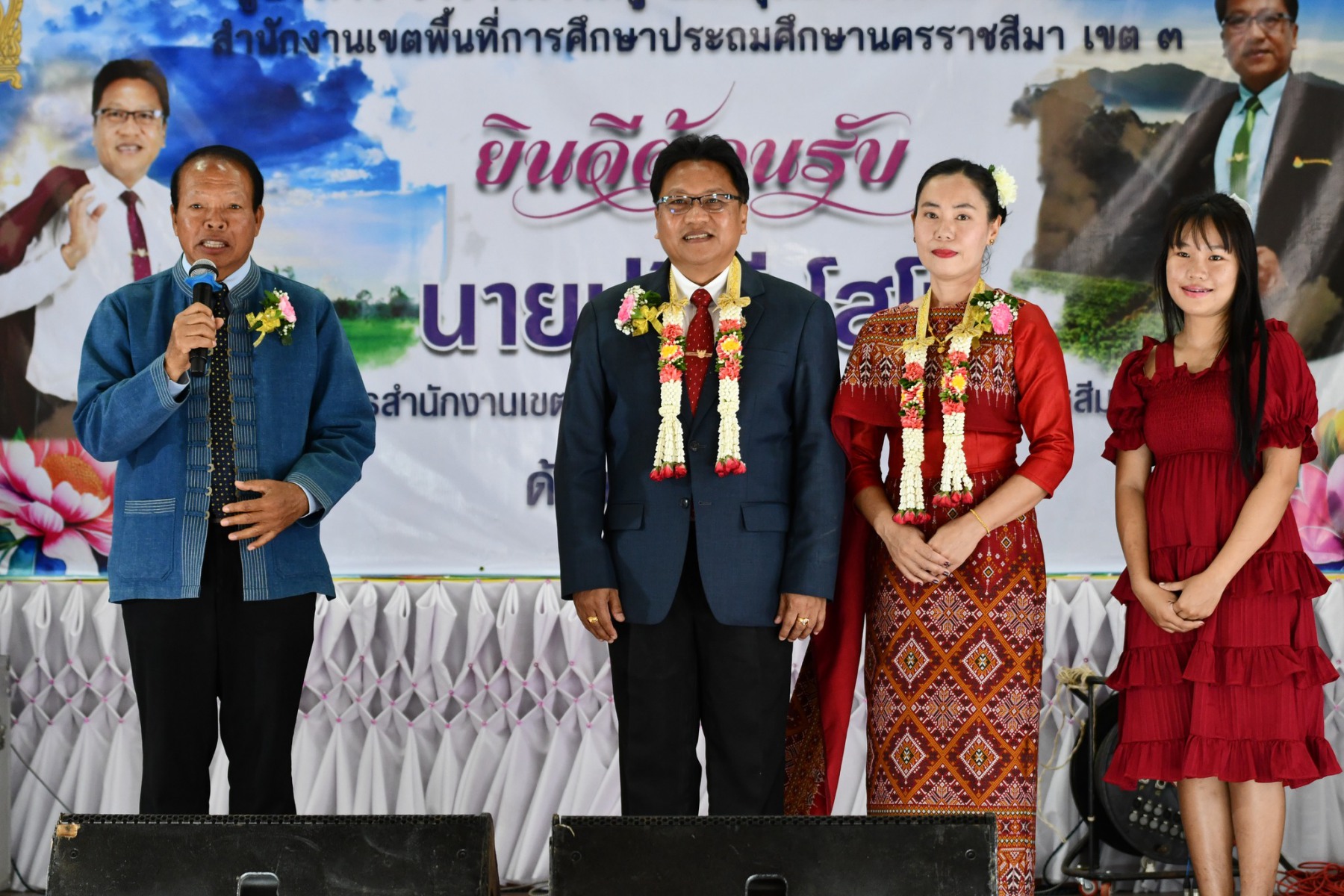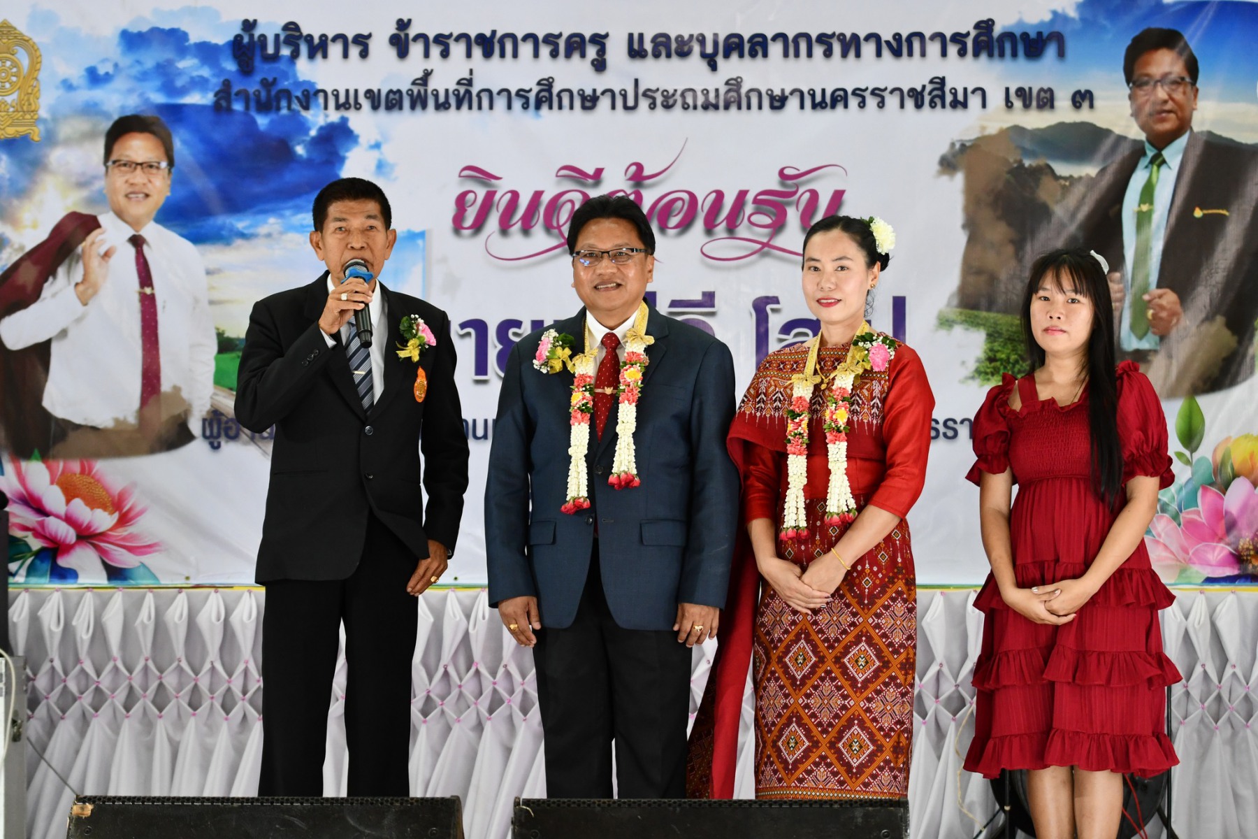นายออน กาจกระโทก อดีตสมาชิกวุฒิสภา นายอังคารพิสุทธ์ สยามประโคน นายเพิ่มวุธ บุบผามาตะนัง นางสอาด บุญเอิบ รองผอ.สพป.นครราชสีมา เขต 3 ประธานกลุ่มพัฒนาคุณภาพและมาตรฐานการศึกษา ทั้ง 12 กลุ่ม ผู้บริหารสถานศึกษาในสังกัด และเจ้าหน้าที่ ให้การต้อนรับ นายปรีดี โสโป ผู้อำนวยการสำนักงานเขตพื้นที่การศึกษามัธยมศึกษา จันทบุรี ตราด ในโอกาสมาปฏิบัติหน้าที่ผู้อำนวยการสำนักงานเขตพื้นที่การศึกษาประถมศึกษานครราชสีมา เขต 3 ณ อาคารเอนกประสงค์ โรงเรียนอนุบาลครบุรี อำเภอครบุรี จังหวัดนครราชสีมา