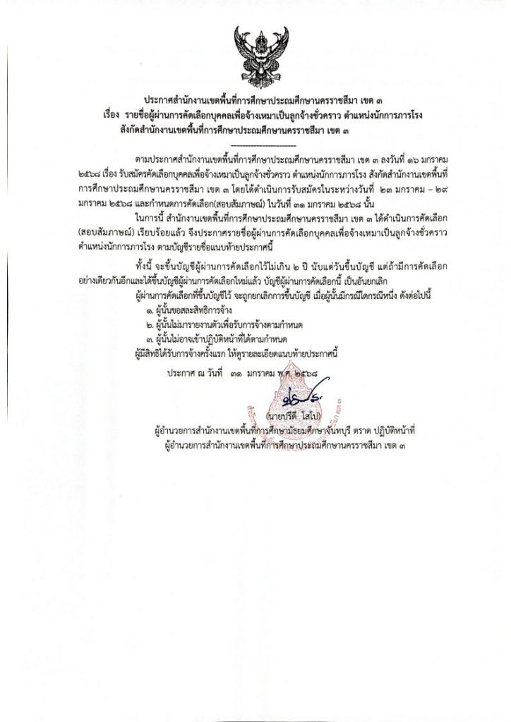 Share: Previous Post ประกาศสำนักงานเขตพื้นที่การศึกษาประถมศึกษานครราชสีมา เขต 3 เรื่อง รายชื่อผู้มีสิทธิเข้ารับการคัดเลือกบุคคลเพื่อจ้างเหมาเป็นลูกจ้างชั่วคราว ตำแหน่งนักการภารโรง สังกัดสำนักงานเขตพื้นที่การศึกษาประถมศึกษานครราชสีมา เขต 3 Next Post ประชาสัมพันธ์การประชุมสัมมนาทางวิชาการ ภายหลังการสัมมนาระดับนานาชาติของศูนย์ภาษาซีมีโอ ประจำปี 2568 Related Articles ข่าวประชาสัมพันธ์ ความเข้าใจประเด็นปัญหาการจัดซื้อจัดจ้างและแนวทางปฏิบัติการพิจารณาเรื่องอุทธรณ์และข้อร้องเรียน ข่าวประชาสัมพันธ์ไม่มีหมวดหมู่ ประกาศ อ.ก.ค.ศ.เขตพื้นที่การศึกษาประถมศึกษานครราชสีมา เขต 3 เรื่อง รับสมัครคัดเลือกบุคคลเพื่อบรรจุและแต่งตั้งให้ดำรงตำแหน่งศึกษานิเทศก์ สังกัดสำนักงานคณะกรรมการการศึกษาขั้นพื้นฐาน ครั้งที่ 2 ปี พ.ศ.2567 ข่าวประชาสัมพันธ์ โครงการพัฒนาศักยภาพผู้ประกอบวิชาชีพทางการศึกษา ข่าวประชาสัมพันธ์ อบรมอังกฤษออนไลน์ ข่าวประชาสัมพันธ์ อบรมเชิงวิชาการ “หลักเกณฑ์ราคากลางงานก่อสร้างของราชการและการใช้ค่า K” รุ่นที่ 93
