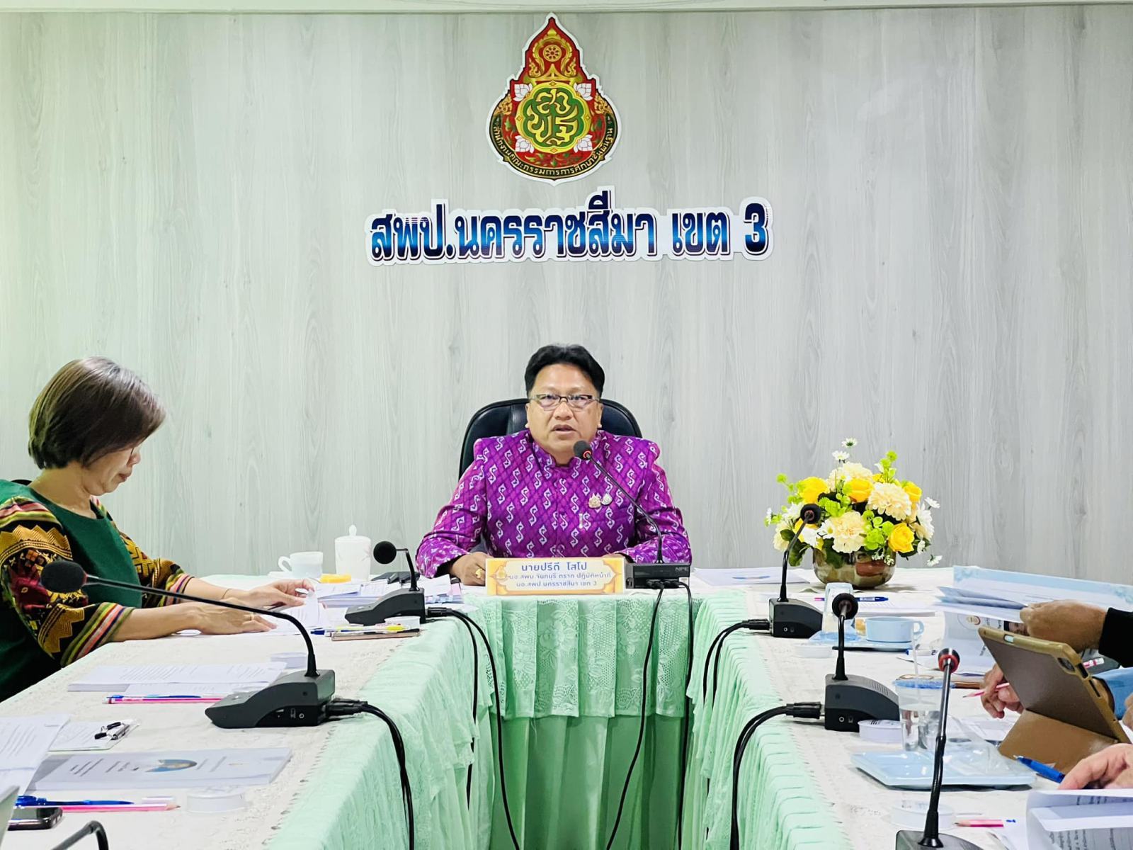 วันที่ 4 มีนาคม 2568 เวลา 13.30 น. นายปรีดี โสโป ผอ.สพม.จันทบุรี ตราด ปฏิบัติหน้าที่ ผอ.สพป.นครราชสีมา เขต 3 เป็นประธานการประชุมคณะกรรมการจัดทำข้อมูล ผู้ประสงค์ขอย้าย ตำแหน่งผู้บริหารสถานศึกษา ปี พ.ศ. 2567 เพิ่มเติม สังกัดสำนักงานเขตพื้นที่การศึกษาประถมศึกษานครราชสีมา เขต 3 พร้อมด้วย นางรัตดา คูณมา ผอ.กลุ่มบริหารงานบุคคล เจ้าหน้าที่ผู้เกี่ยวข้อง ณ ห้องประชุมสุพรรณิการ์ สพป.นครราชสีมา เขต 3 อำเภอครบุรี จังหวัดนครราชสีมา