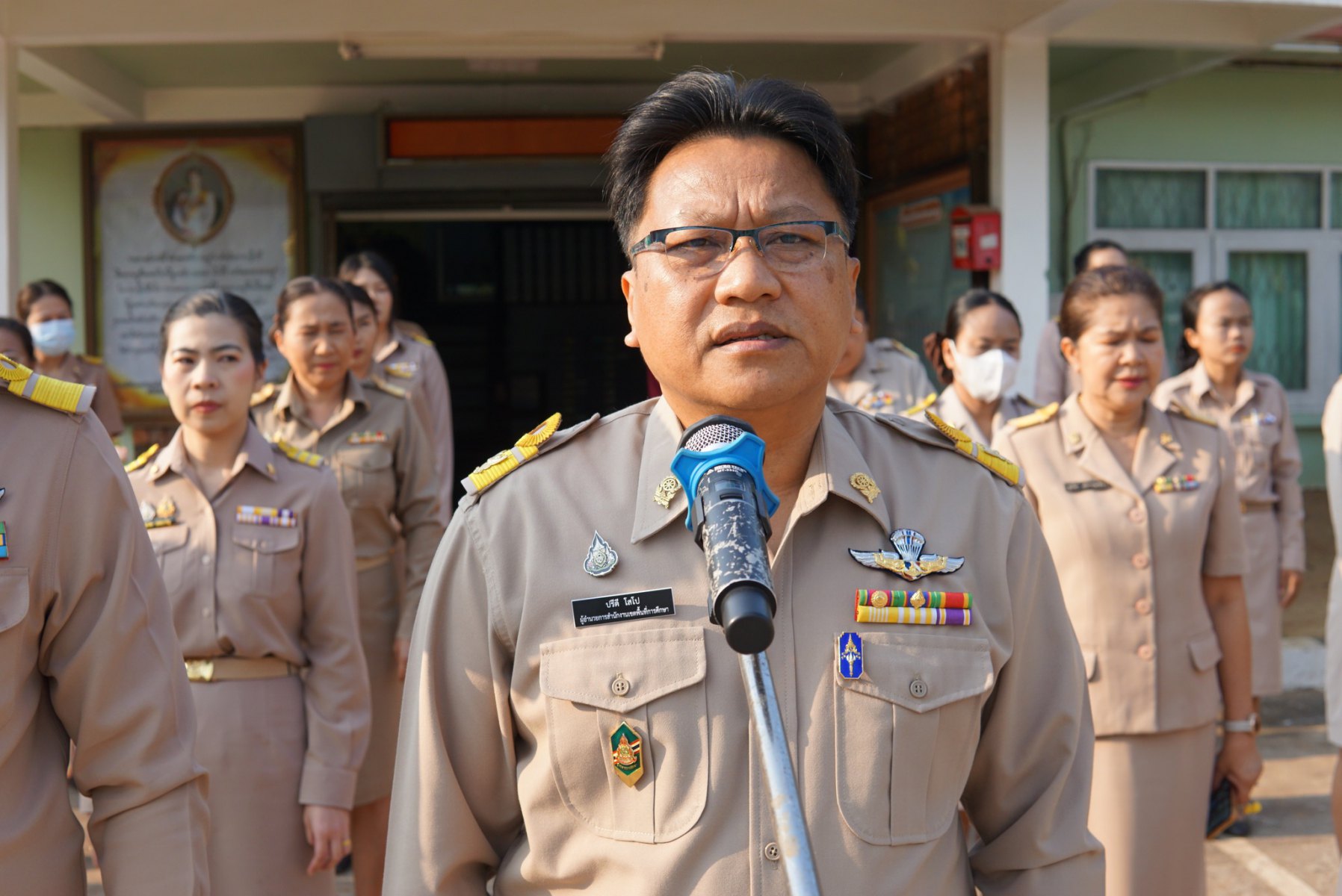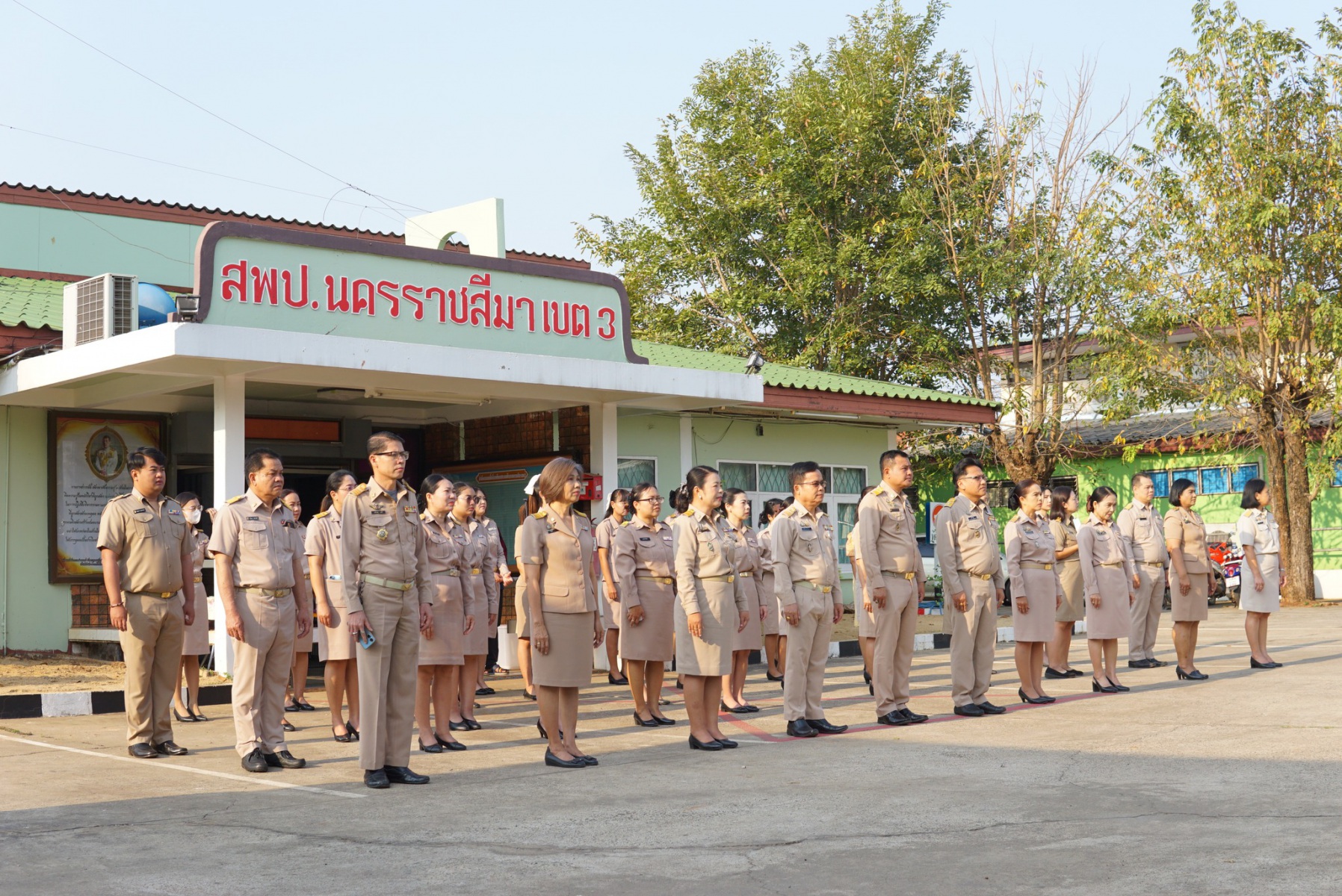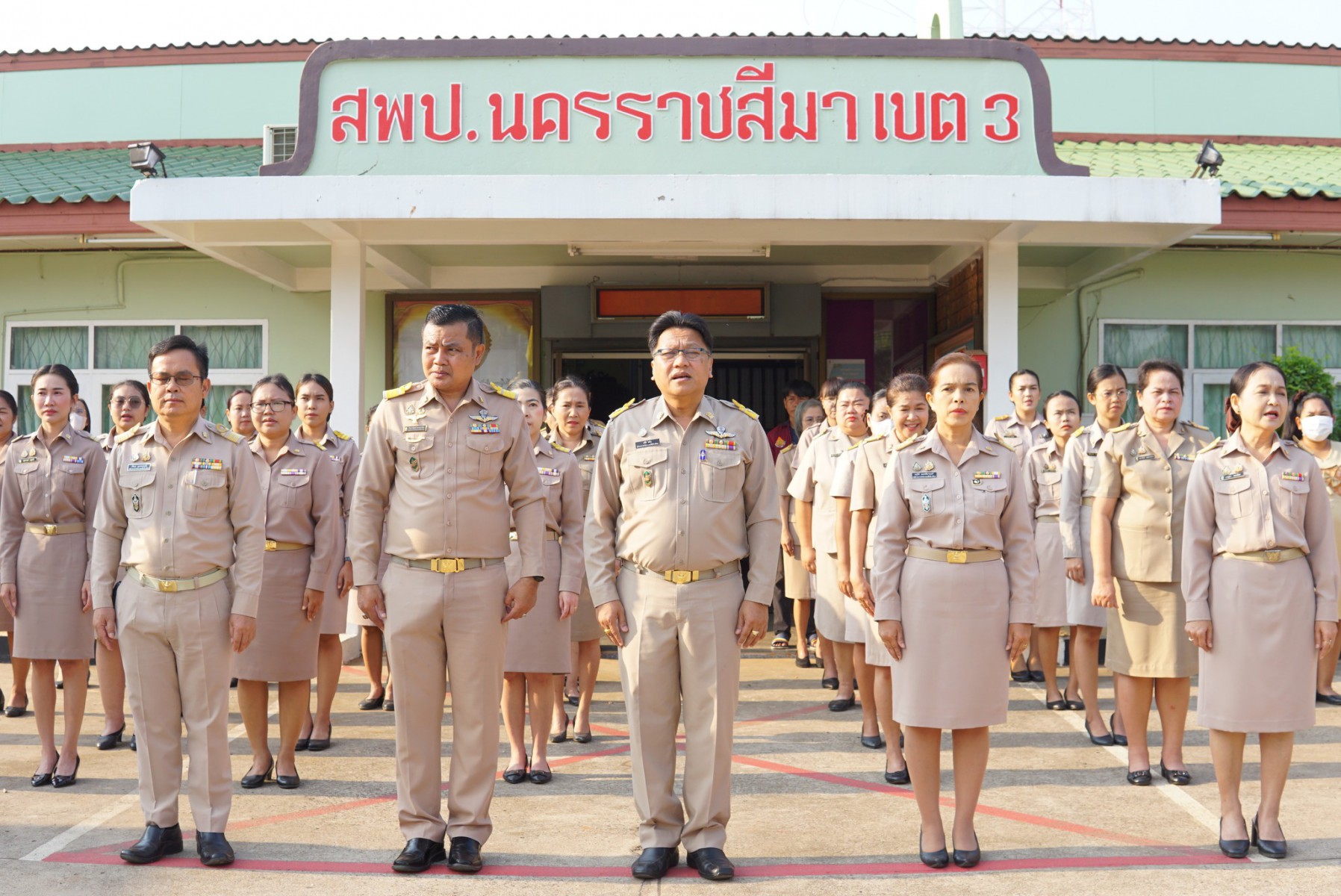 นายปรีดี โสโป ผู้อำนวยการสำนักงานเขตพื้นที่การศึกษามัธยมศึกษาจันทบุรี ตราด ปฏิบัติหน้าที่ผู้อำนวยการสำนักงานเขตพื้นที่การศึกษาประถมศึกษานครราชสีมาเขต 3มอบหมาย นางสาวมยุรีย์ เนตรศิลานนท์ รองผู้อำนวยการสำนักงานเขตพื้นที่การศึกษาประถมศึกษานครราชสีมา เขต 3 นางสอาด บุญเอิบ รองผอ.สพป.อ่างทอง ปฏิบัติราชการ สพป.นครราชสีมา เขต3 และผู้อำนวยการกลุ่ม/หน่วย และบุคลากรทางการศึกษา และลูกจ้างร่วมกิจกรรมเข้าแถวเคารพธงชาติ สวดมนต์ไหว้พระ ปฏิญาณตนเป็นข้าราชการที่ดี และกล่าวปฏิญญาเขตพื้นที่การศึกษาสุจริต พร้อมแจ้ง ข้อราชการ แนวปฏิบัติ เพื่อรับทราบ และถือปฏิบัติร่วมกัน นับเป็นกิจกรรมที่ทางสำนักเขตพื้นที่การศึกษาประถมศึกษานครราชสีมา เขต 3 ได้ดำเนินการอย่างต่อเนื่องณ ลานหน้าเสาธง สำนักงานเขตพื้นที่การศึกษานครราชสีมา เขต3