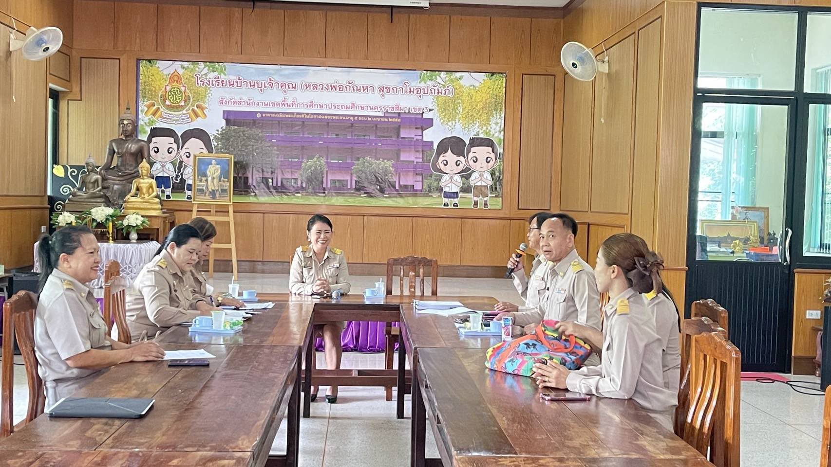 วันที่ 19 พฤษภาคม 2568 นายปรีดี โสโป ผอ.สพม.จันทบุรี ตราด ปฏิบัติหน้าที่ผอ.สพป.นครราชสีมา เขต 3 มอบหมายนางสอาด บุญเอิบ รอง ผอ.สพป. อ่างทอง ปฏิบัติราชการ สพป. นครราชสีมา เขต 3 นางสาวพรทิพย์ พุจารย์ ผู้อำนวยการโรงเรียนบ้านไทยสามัคคี คณะกรรมการ ก.ต.ป.น. นายทศพร ศรีวิพัฒน์ ผู้อำนวยการโรงเรียนบ้านหนองไม้สัก ประธานกลุ่มฯวังคีรีนางสาวณัฐฐินันท์ โอกระโทก ศึกษานิเทศก์ชำนาญการพิเศษ นิเทศติดตาม ความพร้อมการเปิดภาคเรียนที่ 1 ปีการศึกษา 2568 กลุ่มพัฒนาคุณภาพและมาตรฐานการศึกษาวังคีรี อำเภอวังน้ำเขียว ณ โรงเรียนบ้านบุเจ้าคุณ (หลวงพ่อกัณหา สุขกาโมอุปถัมภ์ โรงเรียนบ้านคลองสะท้อน โรงเรียนบ้านท่าวังไทรสามัคคี โรงเรียนบ้านวังหมี และโรงเรียนบ้านคลองใบพัด