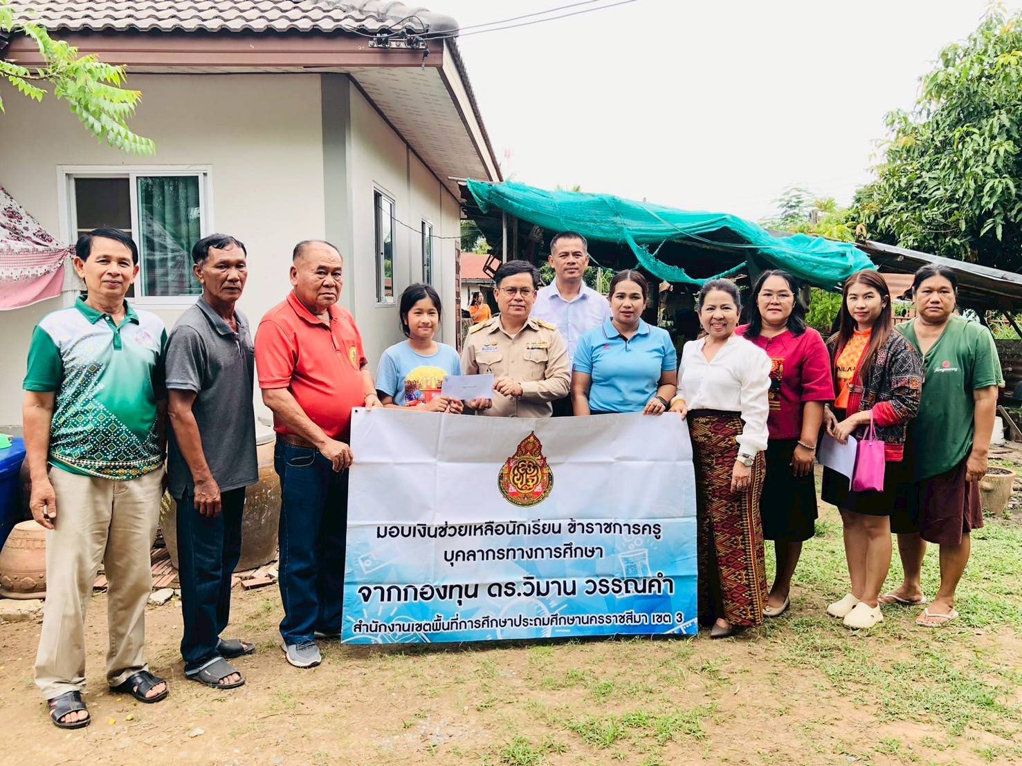 ผู้อำนวยการสำนักงานเขตพื้นที่การศึกษาประถมศึกษานครราชสีมา เขต 3 มอบหมาย นายเพิ่มวุธ บุบผามาตะนัง รองผอ.สพป.นครราชสีมา เขต 3 พร้อมด้วย 🔴 นางสาวพรพิมล เปล่งคงคม ผู้อำนวยการกลุ่มส่งเสริมการจัดการศึกษา 🔴 นางจุไรรัตน์ วอนพรมราช ผู้อำนวยการโรงเรียนบ้านสุขัง(ราษฎร์สามัคคี) และคณะครู 🔴 เจ้าหน้าที่กลุ่มส่งเสริมการจัดการศึกษา 🔎 ออกเยี่ยมพร้อมทั้งให้กำลังใจนักเรียนที่บ้านประสบเหตุอัคคีภัย มอบเงิน ข้าวสาร ของใช้จำเป็นให้กับครอบครัวนักเรียนที่ได้รับผลกระทบจากเหตุอัคคีภัย จำนวน 2 ครัวเรือน 📍 ณ พื้นที่ในสังกัด โรงเรียนบ้านสุขัง (ราษฎร์สามัคคี) อำเภอปักธงชัย จังหวัดนครราชสีมา