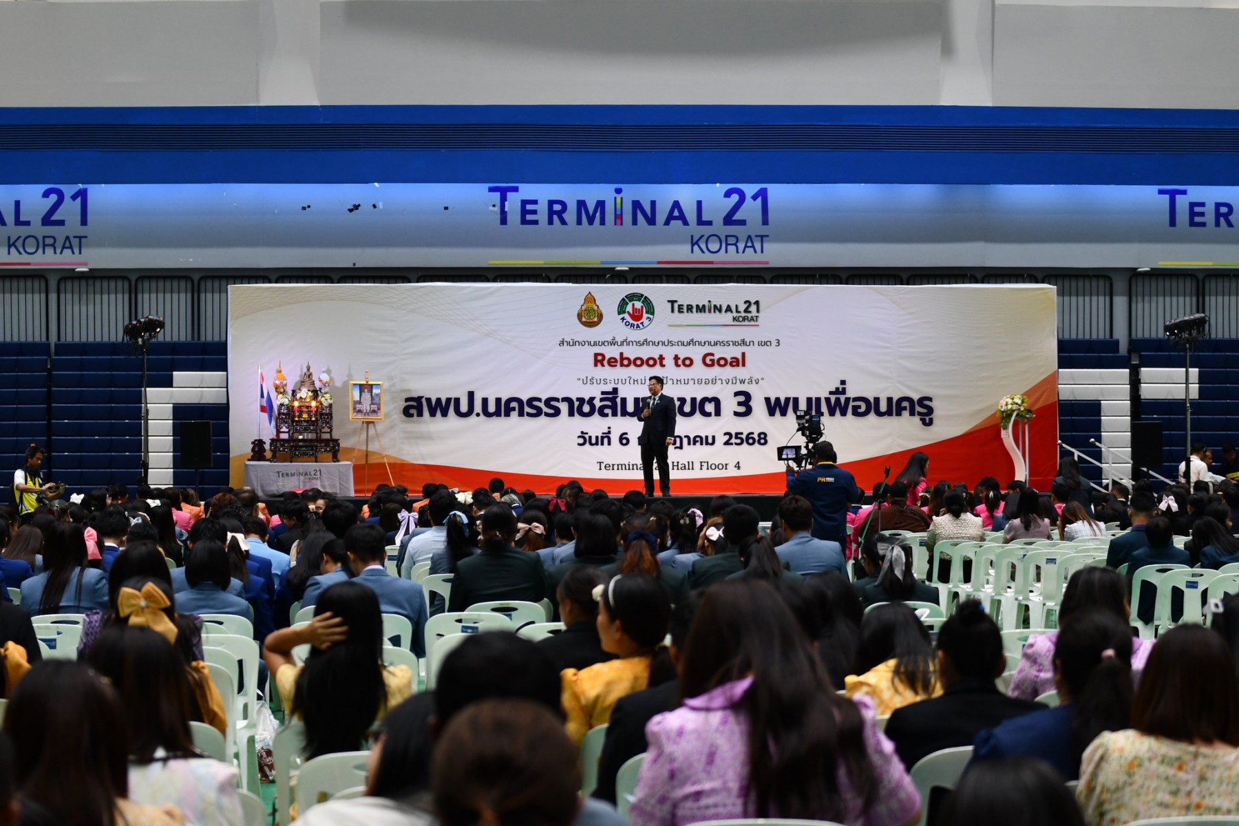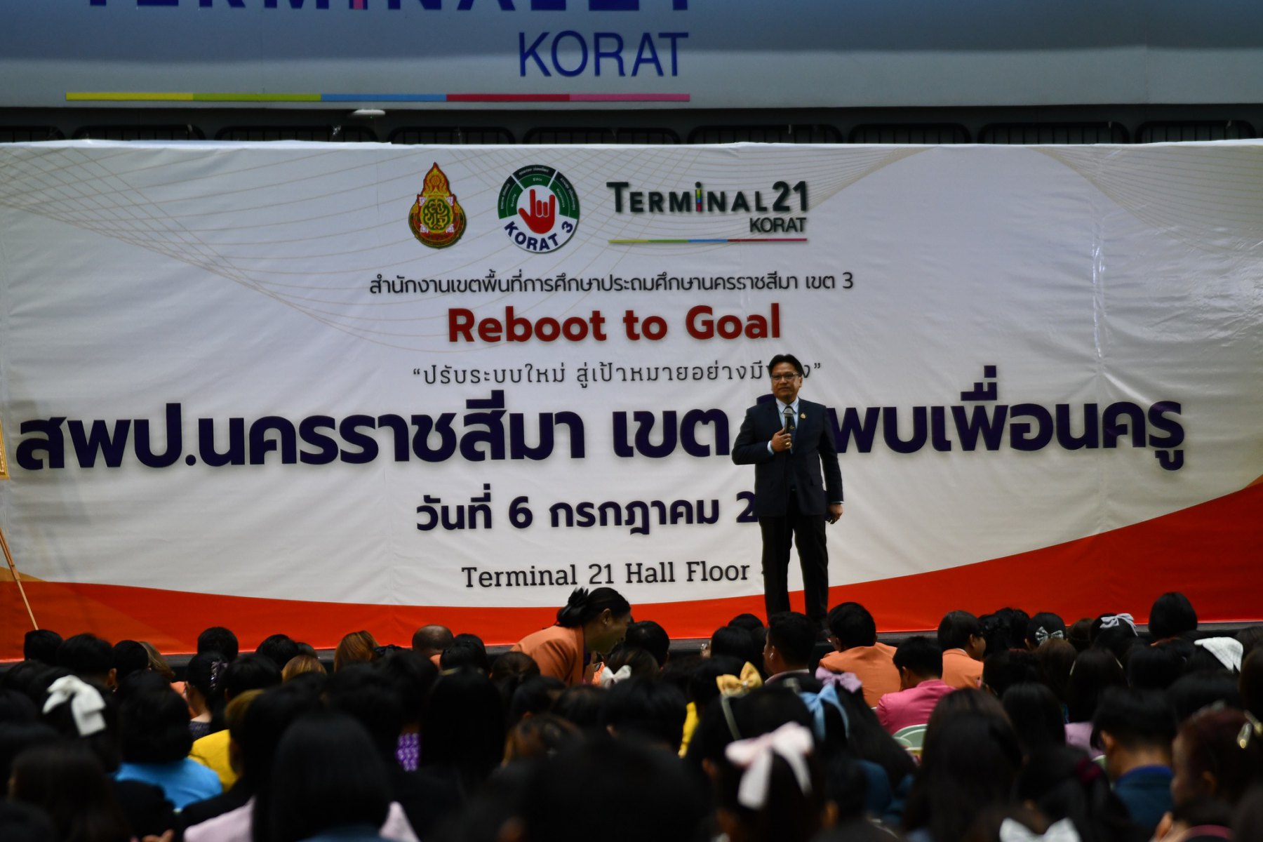 วันอาทิตย์ที่ 6 กรกฎาคม 2568 ตั้งแต่เวลา 13.00น สพป.นครราชสีมา เขต ๓ นำโดยนายปรีดี โสโป ผู้อำนวยการสำนักงานเขตพื้นที่การศึกษานครราชสีมา เขต3 พร้อมด้วย รองผอ.สพป.นครราชสีมา เขต3 ผู้อำนวยการกลุ่มทุกกลุ่มงาน ได้จัดทำโครงการขับเคลื่อนคุณภาพการศึกษาโรงเรียนในสังกัด การประชุม สพป.นครราชสีมา เขต ๓ พบเพื่อนครู “นโยบายชัด ปฏิบัติได้ ผลสัมฤทธิ์เกิด” ปีการศึกษา 2568 ณ ศูนย์การค้าเทอร์มินอล 21 โคราช ห้อง Hall 1 ชั้น 4 อำเภอเมืองนครราชสีมา จังหวัดนครราชสีมา