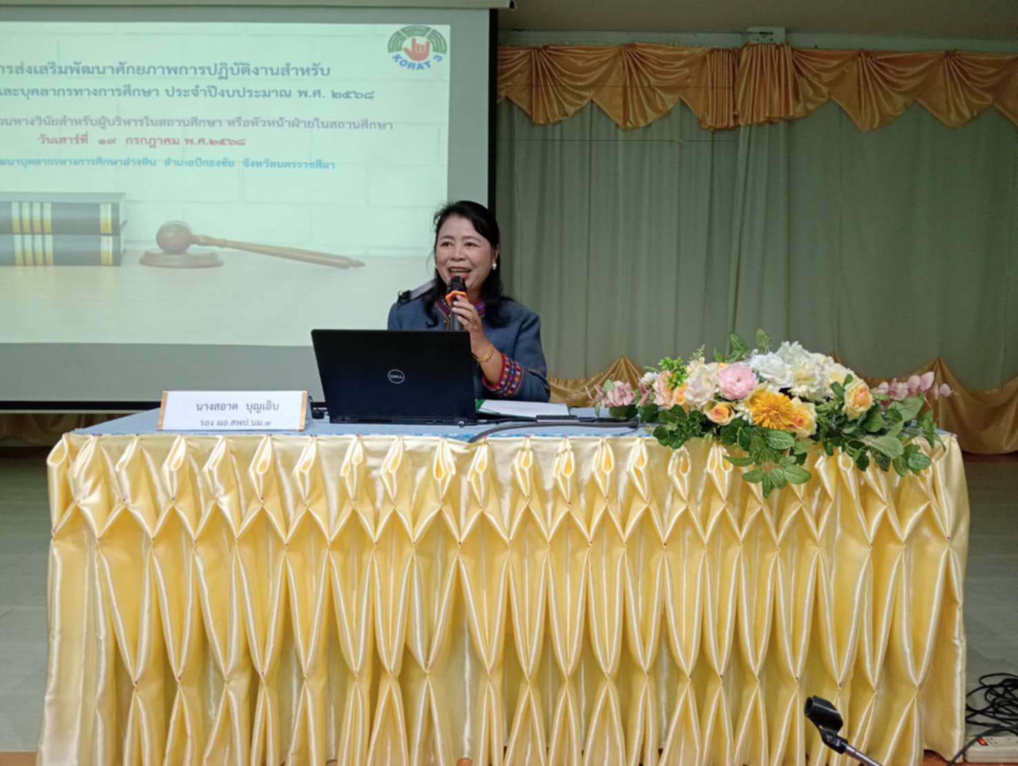 วันที่ 19กรกฎาคม 2568 เวลา 09.00 น. นายปรีดี โสโป ผอ.สพม.จันทบุรี ตราด ปฏิบัติหน้าที่ ผอ.สพป.นครราชสีมา เขต 3 มอบหมาย นางสอาด บุญเอิบ รองผอ.สพป.อ่างทอง ปฏิบัติหน้าที่ สพป.นครราชสีมา เขต3 ประธานเปิดโครงการการส่งเสริมพัฒนาศักยภาพการปฏิบัติงานสำหรับข้าราชการครูและบุคลากรทางการศึกษา ประจำปีงบประมาณ พ.ศ.2568 กิจกรรม วินัยและการรักษาวินัย คุณธรรม จริยธรรมและจรรยาบรรณของข้าราชการครูและบุคลากรทางการศึกษา สำหรับผู้บริหาร นายอติวิชญ์ วงศิริ ผอ.กลุ่มกฏหมายและคดีนายสรายุทธ เกษมอมร นติกร ปฏิบัติการ ณ ห้องประชุมพุทธรักษา ณ ศูนย์พัฒนาบุคลากรทางการศึกษาอ่างหิน อำเภอปักธงชัย จังหวัดนครราชสีมา